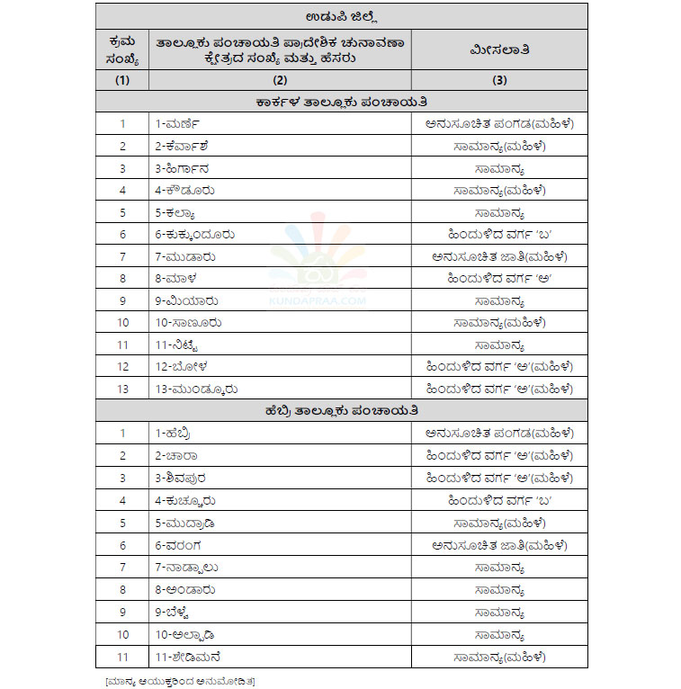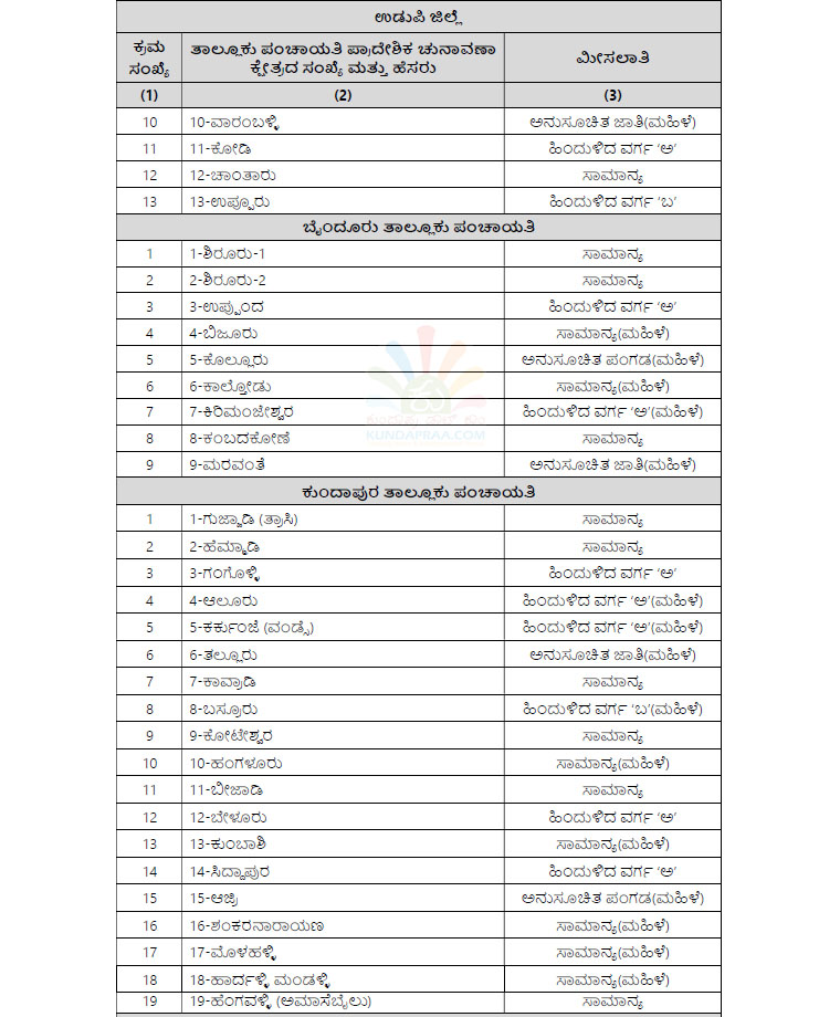 ► ಉಡುಪಿ ಜಿಲ್ಲಾ ಪಂಚಾಯತಿ ಚುನಾವಣಾ ಕ್ಷೇತ್ರದ ಮೀಸಲಾತಿ ಪ್ರಕಟ – https://kundapraa.com/?p=49642 .