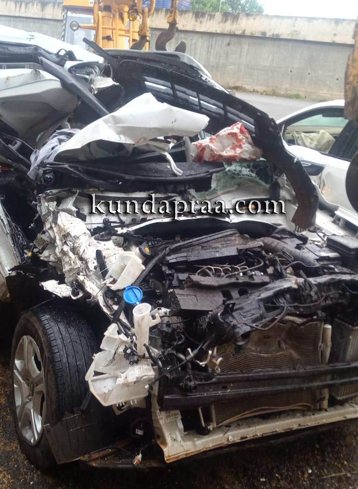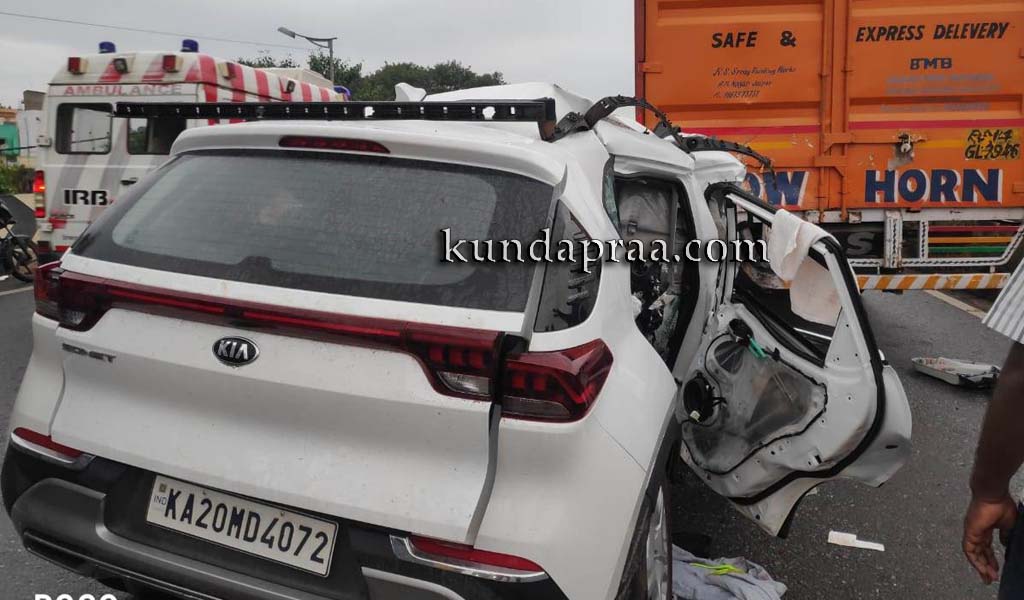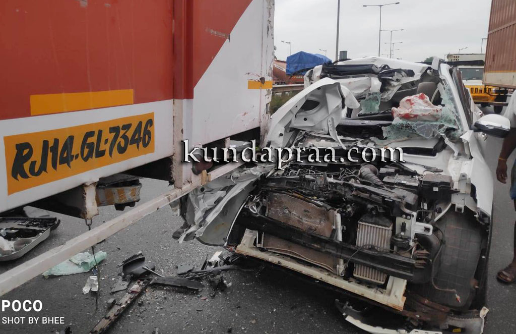 ಕುಂದಾಪುರ: ಕಂಟೈನರ್ ಲಾರಿಗೆ ಹಿಂಬದಿಯಿಂದ ಡಿಕ್ಕಿ ಹೊಡೆದ ಪರಿಣಾಮ ಕಾರಿನಲ್ಲಿದ್ದ ಛಾಯಾಗ್ರಾಹಕ ಹಾಗೂ ಅವರ ಪುತ್ರ ಗಂಭೀರ ಗಾಯಗೊಂಡು, ಹಿಂಬದಿ ಕುಳಿತಿದ್ದ ಇನ್ನೊಬ್ಬ ಪ್ರಯಾಣಿಕ ಪ್ರಾಣಾಪಾಯದಿಂದ ಪಾರಾಗಿರುವ ಘಟನೆ ತುಮಕೂರು ಜಿಲ್ಲಾ ಶಿರಾ ತಾಲೂಕಿನ ಹೆದ್ದಾರಿಯಲ್ಲಿ ಸೋಮವಾರ ಮುಂಜಾನೆ ನಡೆದಿದೆ. ಅಪಘಾತದಲ್ಲಿ ಗಂಭೀರಗೊಂಡವರನ್ನು ಕುಂದಾಪುರದ ಹಿರಿಯ ಛಾಯಾಗ್ರಾಹಕ ಹೇರೂರು ಅಶೋಕ ಕುಮಾರ್ ಶೆಟ್ಟಿ (58) ಹಾಗೂ ಅವರ ಪುತ್ರ ಪನ್ನಗ (24) ಎಂದು ಗುರುತಿಸಲಾಗಿದೆ.