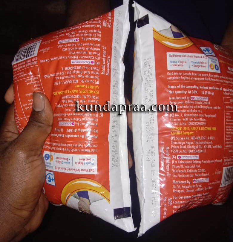 ಕೋವಿಡ್-19 ಸಂದರ್ಭ ಸರಕಾರ ವಿದ್ಯಾರ್ಥಿಗಳಿಗೆ ವಿತರಿಸಲು ಸರಬರಾಜು ಮಾಡಿದ್ದ ಅಡುಗೆ ಎಣ್ಣೆ, ಬೈಂದೂರು ಪಟ್ಟಣ ಪಂಚಾಯತ್ ವ್ಯಾಪ್ತಿಯ ತಗ್ಗರ್ಸೆಯ ಅಂಗಡಿಯೊಂದರಲ್ಲಿ ಪತ್ತೆಯಾಗಿರುವುದು ಸಂಶಯಗಳಿಗೆ ಎಡೆಮಾಡಿಕೊಟ್ಟಿತ್ತು. ಗ್ರಾಹಕರೋರ್ವರು ಎಣ್ಣೆ ಪ್ಯಾಕೇಟ್ ಪರಿಶೀಲಿಸಿದಾಗ ಈ ಅಂಶ ಬೆಳಕಿಗೆ ಬಂದಿದೆ.