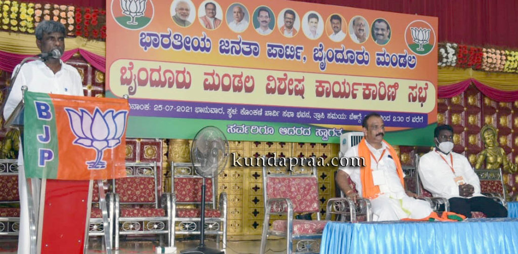 ತ್ರಾಸಿಯ ಕೊಂಕಣಿ ಖಾರ್ವಿ ಸಭಾಭವನದಲ್ಲಿ ಜರಗಿದ ಭಾರತೀಯ ಜನತಾ ಪಾರ್ಟಿ ಬೈಂದೂರು ಮಂಡಲದ ವಿಶೇಷ ಕಾರ್ಯಕಾರಿಣಿ ಸಭೆಯಲ್ಲಿ ಪಾಲ್ಗೊಂಡು ಅವರು ಮಾತನಾಡಿದರು.