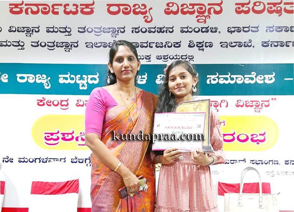 ವಿಜ್ಞಾನ ಪ್ರಬಂಧ ಸ್ಪರ್ಧೆ: ರಾಷ್ಟ್ರ ಮಟ್ಟಕ್ಕೆ ಆಯ್ಕೆಯಾದ ಮರವಂತೆಯ ವಿದ್ಯಾರ್ಥಿನಿಗೆ ಪ್ರಶಸ್ತಿ ಪ್ರದಾನ