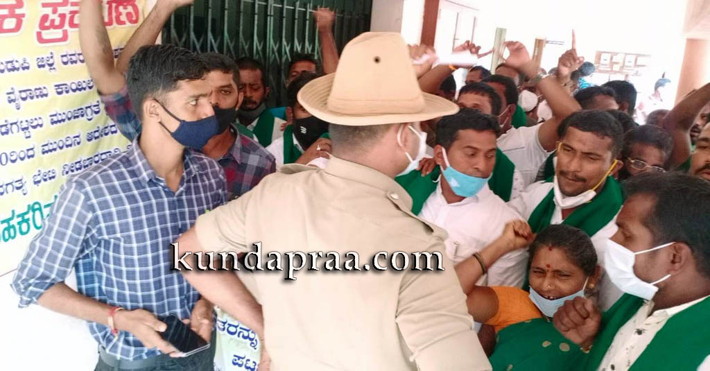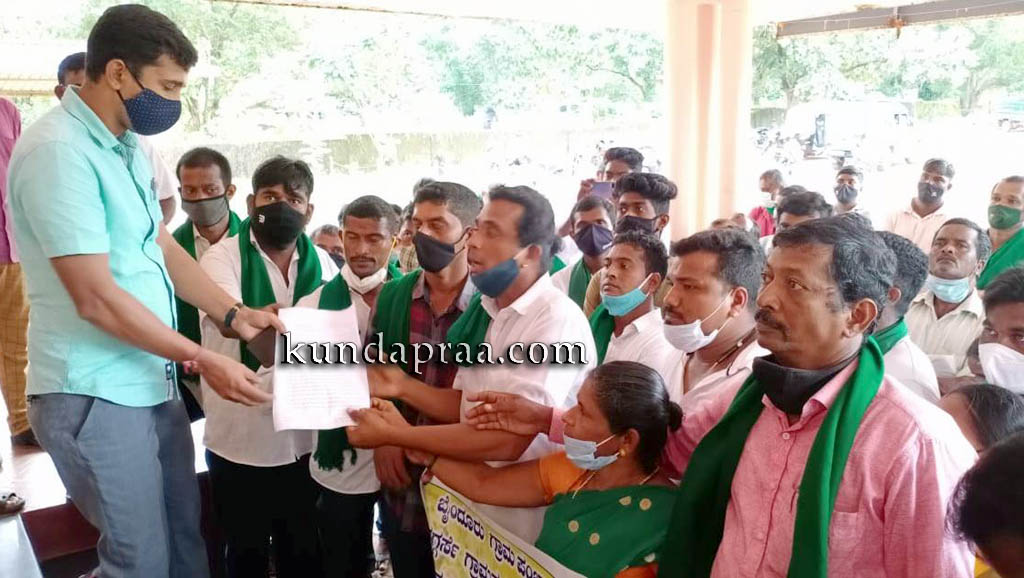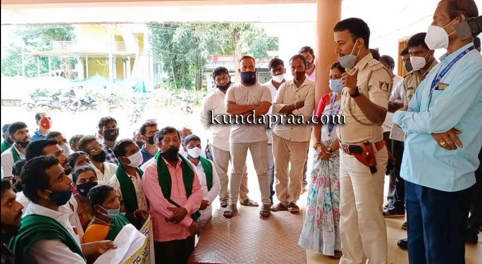 ಮಧ್ಯಾಹ್ನವಾದರೂ ಮನವಿ ಸ್ವೀಕರಿಸಲು ತಹಶೀಲ್ದಾರ್ ಕಾರಣಾಂತರದಿಂದ ತಡವಾಗಿದ್ದಕ್ಕೆ ಕೋಪಗೊಂಡ ರೈತ ಹೋರಾಟಗಾರು ಅವರ ಕಚೇರಿ ಮುತ್ತಿಗೆ ಹಾಕುವ ಪ್ರಯತ್ನವನ್ನು ಪೋಲಿಸರು ತಡೆಯೊಡ್ಡಿ ವಿಫಲಗೊಳಿಸಿದರು. ನಂತರ ಆಗಮಿಸಿದ ತಹಶೀಲ್ದಾರ್ ಶೋಭಾಲಕ್ಷ್ಮೀ ಪ್ರತಿಭಟನಾಕಾರರ ಮನವಿ ಸ್ವೀಕರಿಸಿದರು. ಗ್ರಾಪಂ ಮಾಜಿ ಸದಸ್ಯರಾದ ನಾಗರಾಜ ಗಾಣಿಗ, ಗಣೇಶ ಗಾಣಿಗ, ಗುಲಾಬಿ, ಚೆಂದು ಮತ್ತಿತರರು ಇದ್ದರು.