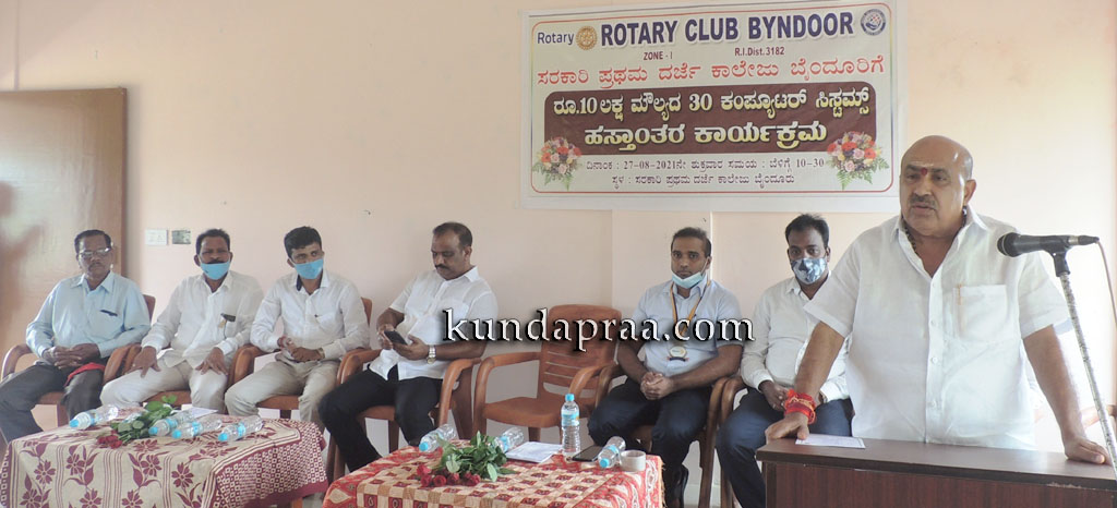 ಅವರು ಶುಕ್ರವಾರ ಬೈಂದೂರು ಸರಕಾರಿ ಪ್ರಥಮ ದರ್ಜೆ ಕಾಲೇಜಿಗೆ ಕಾಗ್ನಿಜೆಂಟ್ ಕಂಪೆನಿ ಹೆಲ್ಫ್ ಟು ಎಜುಕೇಟ್ ಯೋಜನೆಯಡಿ ಬೈಂದೂರು ರೋಟರಿ ಸಂಸ್ಥೆಯ ಮೂಲಕ ಕೊಡಮಾಡಿದ ರೂ. 10 ಲಕ್ಷ ಮೌಲ್ಯದ 30 ಕಂಪ್ಯೂಟರ್ ಸಿಸ್ಟಮ್ ಹಸ್ತಾಂತರಿಸಿ ಮಾತನಾಡಿದರು.