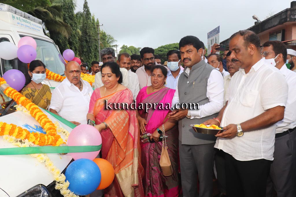 ಹಿಂದೂಳಿದ ಮತ್ತು ಸಮಾಜ ಕಲಾಖ್ಯ ಕಲ್ಯಾಣಸಚಿವ ಕೋಟ ಶ್ರೀನಿವಾಸ ಪೂಜಾರಿ ಅವರು ಅಂಬುಲೆನ್ಸ್ ಲೋಕಾರ್ಪಣೆಗೊಳಿಸಿದರು. ಈ ಸಂದರ್ಭ ಸಂಸದ ಬಿ. ವೈ. ರಾಘವೇಂದ್ರ, ಶಾಸಕ ಬಿ. ಎಂ. ಸುಕುಮಾರ ಶೆಟ್ಟಿ, ಕರ್ನಾಟಕ ರಾಜ್ಯ ಕೈಗಾರಿಕಾ ಮತ್ತು ಮೂಲಸೌಲಭ್ಯ ಅಭಿವೃದ್ಧಿ ನಿಗಮ (ಕೆ.ಎಸ್.ಐ.ಐ.ಡಿ.ಸಿ) ನಿರ್ದೇಶಕ ಸಿ. ಆರ್. ಗಾಯತ್ರಿದೇವಿ, ಕರ್ನಾಟಕ ಬಾಲ ಭವನ ಬೆಂಗಳೂರು ಇದರ ನಿರ್ದೇಶಕರಾದ ಪದ್ಮಿನಿ, ಕುಂದಾಪುರ ಉಪವಿಭಾಗಾಧಿಕಾರಿ ರಾಜು ಕೆ., ಬೈಂದೂರು ಮಂಡಲ ಬಿಜೆಪಿ ಅಧ್ಯಕ್ಷ ದೀಪಕ್ಕುಮಾರ್ ಶೆಟ್ಟಿ, ಕಾರ್ಯದರ್ಶಿ ಪ್ರಕಾಶ್ ಜಿಡ್ಡು, ಜಿಪಂ ಮಾಜಿ ಸದಸ್ಯರಾದ ಬಾಬು ಶೆಟ್ಟಿ, ಸುರೇಶ್ ಬಟವಾಡಿ, ರಾಜ್ಯ ಯೋಜನಾ ಆಯೋಗ ಮಂಡಳಿಯ ಅಧಿಕಾರೇತರ ಸದಸ್ಯೆ ಪ್ರಿಯದರ್ಶಿನಿ ಕಮಲೇಶ್ ಮೊದಲಾದವರು ಉಪಸ್ಥಿತರಿದ್ದರು.