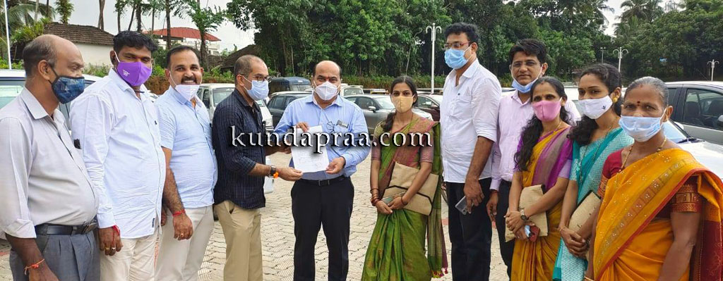 ಕುಂದಾಪುರ: ಜಿಲ್ಲೆಯಲ್ಲಿ ಶನಿವಾರ ಮತ್ತು ಭಾನುವಾರ ವಿಧಿಸಲಾಗಿರುವ ವೀಕೆಂಡ್ ಕರ್ಫ್ಯೂ ತೆರವುಗೊಳಿಸುವಂತೆ ಆಗ್ರಹಿಸಿ ಮುಖ್ಯಮಂತ್ರಿಯವರಿಗೆ, ಉಡುಪಿ ಜಿಲ್ಲಾ ಅಪರ ಜಿಲ್ಲಾಧಿಕಾರಿ ಸದಾಶಿವ ಪ್ರಭು ಅವರ ಮೂಲಕ ಮನವಿ ಸಲ್ಲಿಸಲಾಯಿತು.