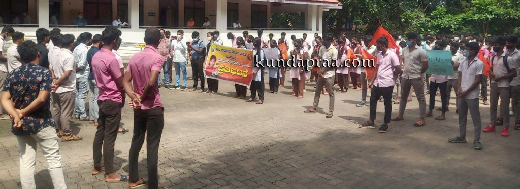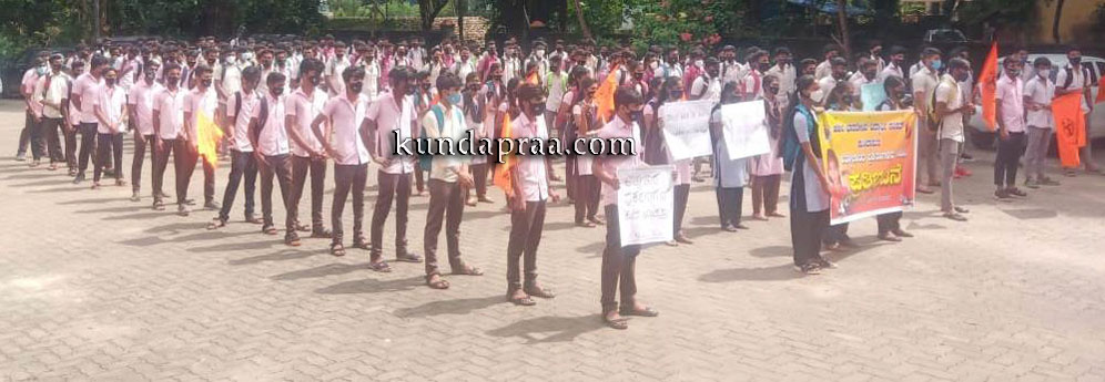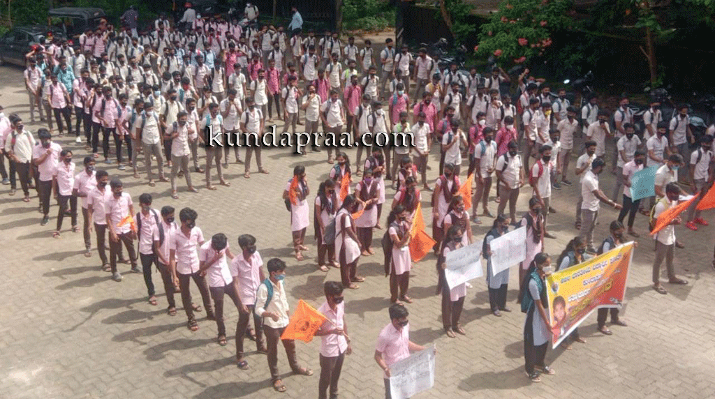 ಈ ಸಂದರ್ಭದಲ್ಲಿ ರಾಜ್ಯ ಸಹ ಕಾರ್ಯದರ್ಶಿ ಮಣಿಕಂಠ ಕಳಸ, ನಿರಕ್ಷಿತ, ಪ್ರಸನ್ನ, ತಾ.ಸಂಚಾಲಕ ಪ್ರಜ್ವಲ್, ಆಶಿಶ್ ಬೋಳ, ವಿಜೇತ್, ಯಶಸ್ವಿನಿ ಬೀಜಾಡಿ, ದೀಪಕ್, ರಶ್ಮಿತಾ, ರಾಹುಲ್, ರಶ್ಮಿತಾ, ಹೃತಿಕ್, ಪಲ್ಲವಿ, ಸಂಜಯ್, ಮೇಘ ಮೊದಲಾದವರು ಭಾಗವಹಿಸಿದ್ದರು. ತಾಲೂಕಿನ ಐದು ಶಿಕ್ಷಣ ಸಂಸ್ಥೆಗಳ ಎಬಿವಿಪಿ ಸಂಘಟನೆಯ ಸದಸ್ಯರು ಪ್ರತಿಭಟನೆಯಲ್ಲಿ ಭಾಗವಹಿಸಿದ್ದರು. ಬಳಿಕ ತಹಶೀಲ್ದಾರ್ ಮೂಲಕ ಮನವಿ ಸಲ್ಲಿಸಲಾಯಿತು.