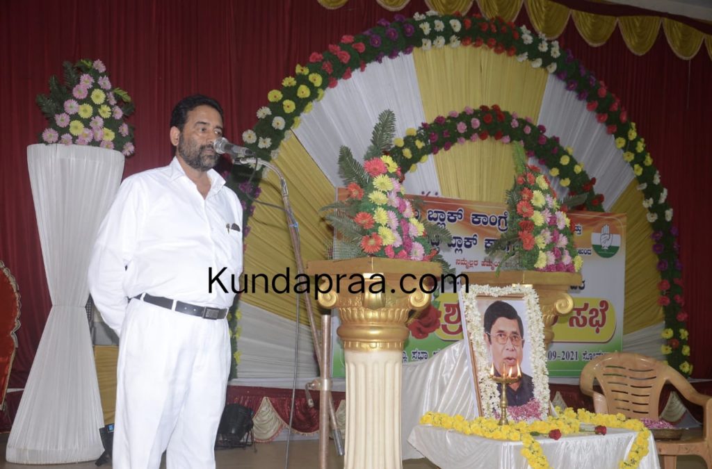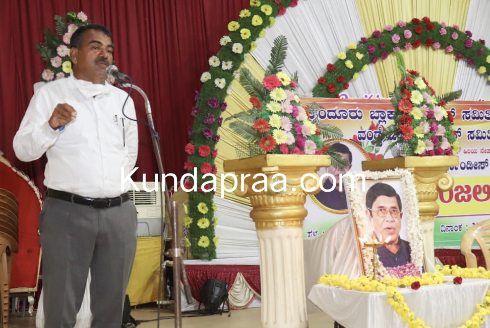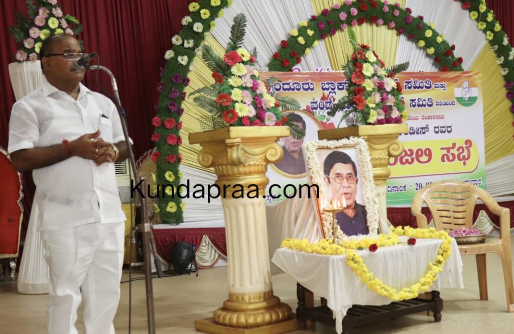 ಅವರು ತ್ರಾಸಿ ಅಣ್ಣಪ್ಪಯ್ಯ ಸಭಾಭವನದಲ್ಲಿ ಸೋಮವಾರ ಬೈಂದೂರು ಹಾಗೂ ವಂಡ್ಸೆ ಬ್ಲಾಕ್ ಕಾಂಗ್ರೆಸ್ ಸಮಿತಿ ಆಶ್ರಯದಲ್ಲಿ ಆಯೋಜಿಸಲಾಗಿದ್ದ ಸಭೆಯಲ್ಲಿ ಕಾಂಗ್ರೆಸ್ ನಾಯಕ ದಿ. ಆಸ್ಕರ್ ಫೆರ್ನಾಂಡಿಸ್ ಅವರಿಗೆ ಶ್ರದ್ಧಾಂಜಲಿ ಸಲ್ಲಿಸಿ ಮಾತನಾಡಿದರು.