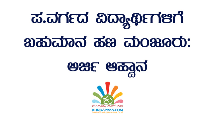 Home » ಪ.ವರ್ಗದ ವಿದ್ಯಾರ್ಥಿಗಳಿಗೆ ಬಹುಮಾನ ಹಣ ಮಂಜೂರು: ಅರ್ಜಿ ಆಹ್ವಾನ