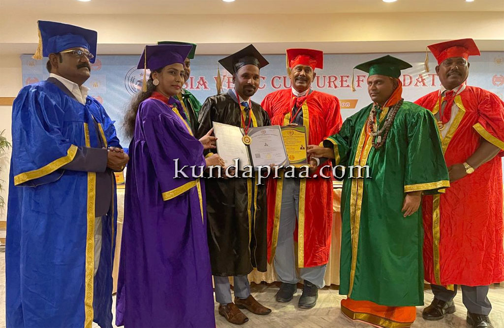 ಕುಂದಾಪುರ: ಏಷ್ಯಾ ವೇದಿಕ್ ಕಲ್ಚರ್ ರಿಸರ್ಚ್ ಯುನಿವರ್ಸಿಟಿಯು ಬೆಂಗಳೂರಿನಲ್ಲಿ ಶನಿವಾರ ಆಯೋಜಿಸಿದ್ದ ಕಾರ್ಯಕ್ರಮದಲ್ಲಿ ಉದ್ಯಮಿ ಹಾಗೂ ಸಮಾಜ ಸೇವಕ ಗೋವಿಂದ ಬಾಬು ಪೂಜಾರಿ ಅವರಿಗೆ ಗೌರವ ಡಾಕ್ಟರೇಟ್ ಪದವಿ ನೀಡಿ ಗೌರವಿಸಿದೆ.