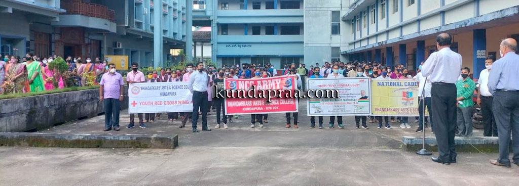 ಕಾಲೇಜಿನ ಎನ್ಸಿಸಿ ನೇವಿ ಮತ್ತು ಆರ್ಮಿ, ಎನ್ಎಸ್ಎಸ್, ಯೂತ್ ರೆಡ್ಕ್ರಾಸ್ ಮತ್ತು ಕ್ರೀಡಾ ವಿಭಾಗಗಳ ಸುಮಾರು150ಕ್ಕೂ ಹೆಚ್ಚು ವಿದ್ಯಾರ್ಥಿಗಳು ಪಾಲ್ಗೊಂಡಿದ್ದು, ಕುಂದಾಪುರ ಸ್ಥಳೀಯ ಪೋಲೀಸ್ ಇಲಾಖೆಯ ಸಹಕಾರದೊಂದಿಗೆ ಇಲ್ಲಿನ ಪಾರಿಜಾತ ಸರ್ಕಲ್ವರೆಗೆ ವಿದ್ಯಾರ್ಥಿ-ಜಾಥ ಜರುಗಿತು.