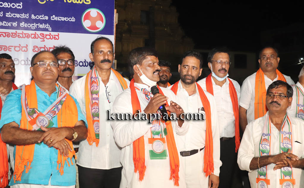 ಬಳಿಕ ನಡೆದ ಸಭೆಯನ್ನುದ್ದೇಶಿಸಿ ಮಾಜಿ ಶಾಸಕ ಕೆ. ಗೋಪಾಲ ಪೂಜಾರಿ ಅವರು ಮಾತನಾಡಿ ಜಾತಿ ಧರ್ಮಗಳ ನಡುವೆ ವಿಷಬೀಜ ಬಿತ್ತಿ ತನ್ನ ಬೇಳೆ ಬೇಯಿಸಿಕೊಳ್ಳುವುದೇ ಬಿಜೆಪಿ ಪಕ್ಷದ ಸಿದ್ಧಾಂತ. ಹಿಂದೂ ಧರ್ಮದ ಹೆಸರಿನಲ್ಲಿ ಅಧಿಕಾರಕ್ಕೆ ಬಂದ ಬಿಜೆಪಿ ಪಕ್ಷ ಇಂದು ದೇವಸ್ಥಾನಗಳನ್ನು ಕೆಡವುತ್ತಿದೆ. ಬಿಜೆಪಿಯ ಇಬ್ಬಗೆಯ ನೀತಿ ಇದರಿಂದಲೇ ತಿಳಿಯುತ್ತದೆ. ಜನರಿಗೆ ಸುಳ್ಳು ಹೇಳಿ ಮರಳು ಮಾಡುವುದು ಈಗ ಸಾಧ್ಯವಿಲ್ಲ. ಸರಕಾರದ ಬೊಕ್ಕಸ ಕೊಳ್ಳೆ ಹೊಡೆಯುವುದು ಬಿಟ್ಟರೆ ಬಿಜೆಪಿ ಮತ್ತೇನು ಮಾಡಿಲ್ಲ. ಎಲ್ಲದಕ್ಕೂ ಜನರು ಸರಿಯಾದ ಉತ್ತರ ನೀಡಲಿದ್ದಾರೆ ಎಂದರು.