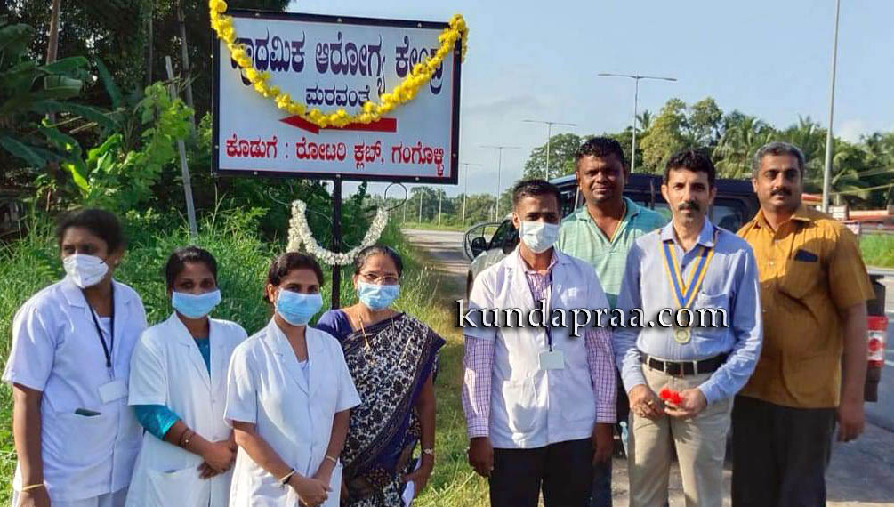 ಮರವಂತೆ ಪ್ರಾಥಮಿಕ ಆರೋಗ್ಯ ಕೇಂದ್ರಕ್ಕೆ ಗಂಗೊಳ್ಳಿ ರೋಟರಿ ಕ್ಲಬ್ ವತಿಯಿಂದ ಮಾರ್ಗಸೂಚಿ ನಾಮಫಲಕವನ್ನು ಕೊಡುಗೆಯಾಗಿ ನೀಡಲಾಯಿತು.