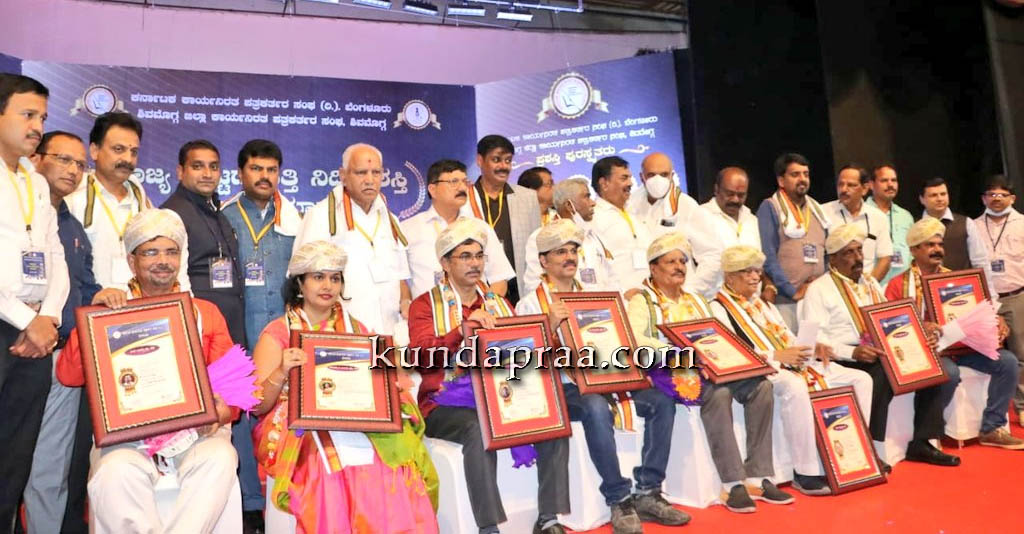 ಶಿವಮೊಗ್ಗ ಕಾರ್ಯನಿರತ ಪತ್ರಕರ್ತರ ಸಂಘದ ಆಶ್ರಯದಲ್ಲಿ ಕುವೆಂಪು ರಂಗಮಂದಿರದಲ್ಲಿ ಜರುಗಿದ ರಾಜ್ಯ ಮಟ್ಟದ ದತ್ತಿ ನಿಧಿ ಪ್ರಶಸ್ತಿ ಪ್ರದಾನ ಸಮಾರಂಭದಲ್ಲಿ ಗೃಹ ಸಚಿವ ಅರಗ ಜ್ಞಾನೇಂದ್ರ ಅವರು ಪ್ರಶಸ್ತಿ ಪ್ರದಾನ ಮಾಡಿದರು. ಈ ಸಂದರ್ಭ ಮಾಜಿ ಮುಖ್ಯಮಂತ್ರಿಗಳಾದ ಬಿ. ಎಸ್. ಯಡಿಯೂರಪ್ಪ, ಸಂಸದ ಬಿ. ವೈ. ರಾಘವೇಂದ್ರ, ಎಂಎಲ್‌ಸಿ ಆಯನೂರು ಮಂಜುನಾಥ, ಭಾರತೀಯ ಕಾರ್ಯನಿರತ ಪತ್ರಕರ್ತರ ಸಂಘದ ಏಷ್ಯಾ ವಿಭಾಗದ ಸಂಚಾಲಕ ಎಚ್. ಬಿ. ಮದನಗೌಡ, ಕರ್ನಾಟಕ ಕಾರ್ಯನಿರತ ಪತ್ರಕರ್ತರ ಸಂಘದ ನಿರ್ದೇಶಕ ಎನ್. ರವಿಕುಮಾರ್, ಕರ್ನಾಟಕ ಕಾರ್ಯನಿರ ಪತ್ರಕರ್ತರ ಸಂಘದ ಅಧ್ಯಕ್ಷ ಶಿವಾನಂದ ತಗಡೂರು, ಕಾರ್ಯದರ್ಶಿ ಜೆ.ಸಿ ಲೋಕೇಶ್, ಶಿವಮೊಗ್ಗ ಜಿಲ್ಲಾ ಪತ್ರಕರ್ತರ ಸಂಘದ ಅಧ್ಯಕ್ಷ ಕೆ.ವಿ. ಶಿವಕುಮಾರ್ ಮೊದಲಾದವರು ಉಪಸ್ಥಿತರಿದ್ದರು.