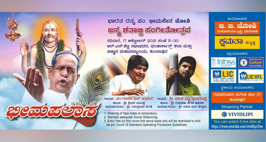ಕುಂದಾಪುರ: ಭಾರತ ರತ್ನ ಪಂಡಿತ್ ಭೀಮಸೇನ್ ಜೋಶಿಯವರ ಜನ್ಮ ಶತಮಾನೋತ್ಸವವನ್ನು ಧಾರವಾಡದ ಜಿ.ಬಿ. ಜೋಶಿ ಮೆಮೋರಿಯಲ್ ಟ್ರಸ್ಟ್ ಹಾಗೂ ಕ್ಷಮತಾ ಹುಬ್ಬಳ್ಳಿ ಸಂಸ್ಥೆಯು ಜೊತೆಯಾಗಿ ಆಚರಿಸುತ್ತಿದ್ದು, ಇದರ ಅಂಗವಾಗಿ ಅ.17ರ ಸಂಜೆ 5:30ಕ್ಕೆ ಕುಂದಾಪುರದ ಭಂಡಾರ್ಕಾರ್ಸ್ ಕಾಲೇಜಿನ ಆರ್ ಎನ್ ಶೆಟ್ಟಿ ಸಭಾಂಗಣದಲ್ಲಿ ನಾಡಿನ ಪ್ರಖ್ಯಾತ ಕಲಾವಿದ ಪಂಡಿತ್ ಗಣಪತಿ ಭಟ್ಟ ಹಾಸಣಗಿಯವರ ಹಿಂದೂಸ್ತಾನಿ ಶಾಸ್ತ್ರೀಯ ಗಾಯನ ಕಾರ್ಯಕ್ರಮವನ್ನು ಆಯೋಜಿಸಲಾಗಿದೆ.