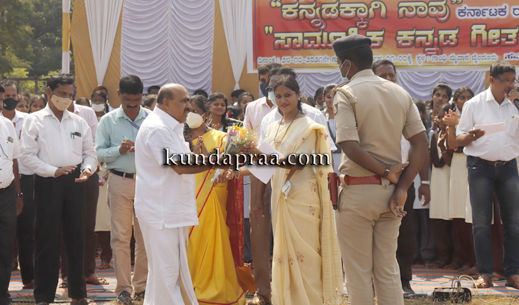 ಬೈಂದೂರು: ಬೈಂದೂರು ತಾಲೂಕು ಆಡಳಿತ, ಕನ್ನಡ ಮತ್ತು ಸಂಸ್ಕೃತಿ ಇಲಾಖೆ ಉಡುಪಿ ಜಿಲ್ಲೆ ಆಶ್ರಯದಲ್ಲಿ ಕರ್ನಾಟಕ ರಾಜ್ಯೋತ್ಸವದ ಪ್ರಯುಕ್ತ ಕನ್ನಡಕ್ಕಾಗಿ ನಾವು ಸಾಮೂಹಿಕ ಕನ್ನಡ ಗೀತ ಗಾಯನ ಕಾರ್ಯಕ್ರಮ ಇಲ್ಲಿನ ಗಾಂಧಿ ಮೈದಾನದಲ್ಲಿ ನಡೆಯಿತು.
