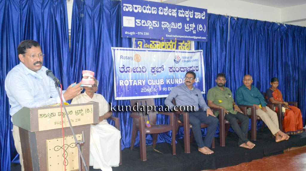 ಕುಂದಾಪುರ: ರೋಟರಿ ಕ್ಲಬ್ ಕುಂದಾಪುರ ಆಶ್ರಯದಲ್ಲಿ ನಾರಾಯಣ ವಿಶೇಷ ಮಕ್ಕಳ ಶಾಲೆಯಲ್ಲಿ ಹಲ್ಲಿನ ಸ್ವಚ್ಛತೆ ಮತ್ತು ಬಾಯಿಯ ಆರೋಗ್ಯ ದ ಬಗ್ಗೆ ಮಾಹಿತಿ ಕಾರ್ಯಾಗಾರ ಮತ್ತು ದಂತ ಸ್ವಚ್ಛತಾ ಕಿಟ್ ವಿತರಣಾ ಕಾರ್ಯಕ್ರಮ ನಡೆಯಿತು.
