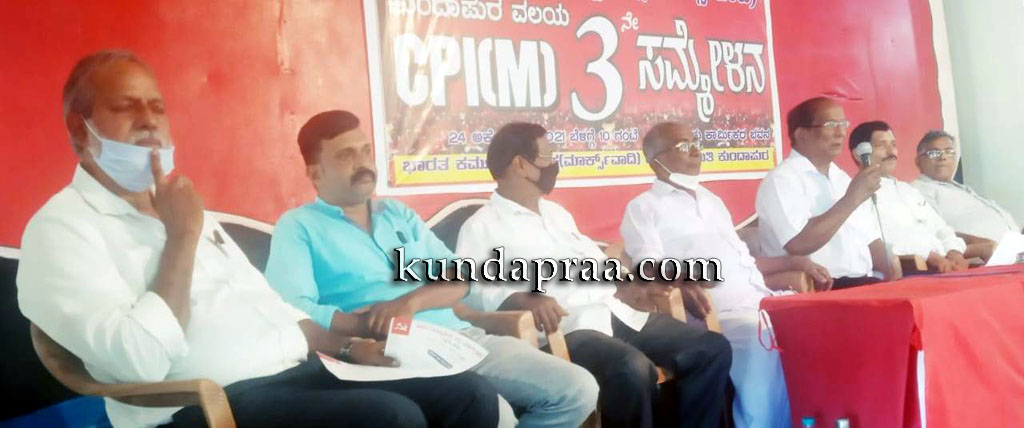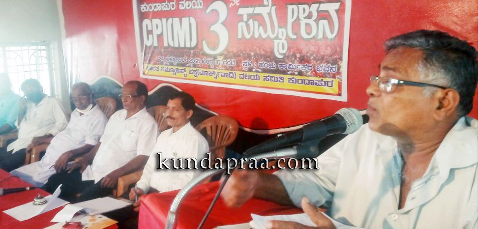 ಕುಂದಾಪುರ ಹೆಂಚು ಕಾಮಿ೯ಕ ಭವನದ ಸಭಾಂಗಣದಲ್ಲಿ ಜರಗಿದ ಸಿಪಿಐ(ಎಂ)ಕುಂದಾಪುರ ವಲಯದ ಮೂರನೇ ಸಮ್ಮೇಳನ ಉದ್ಘಾಟಿಸಿ ಅವರು ಮಾತನಾಡಿದರು.
