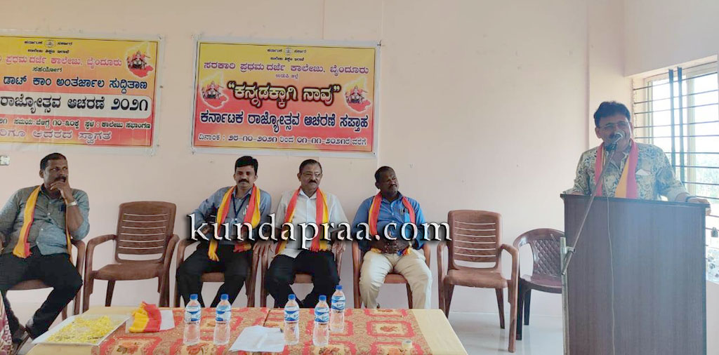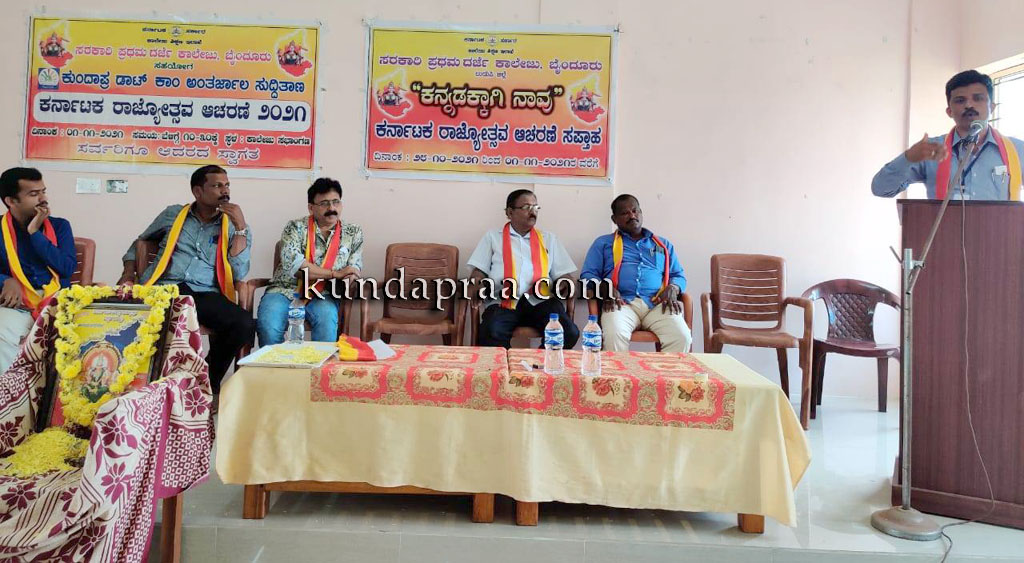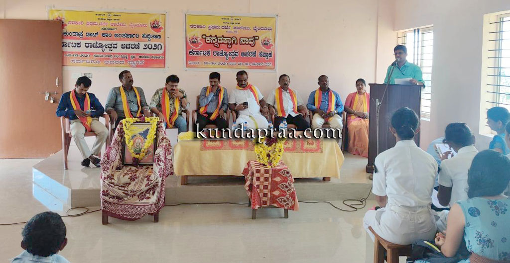 ಅವರು ಸೋಮವಾರ ಸರಕಾರಿ ಪ್ರಥಮ ದರ್ಜೆ ಕಾಲೇಜು, ಕುಂದಾಪ್ರ ಡಾಟ್ ಕಾಂ ಅಂತರ್ಜಾಲ ಸುದ್ದಿತಾಣ ಹಾಗೂ ಕಾಲೇಜಿನ ವಿವಿಧ ಸಂಘಗಳು ಜಂಟಿಯಾಗಿ ಕಾಲೇಜು ಸಭಾಂಗಣದಲ್ಲಿ ಆಯೋಜಿಸಿದ ಕರ್ನಾಟಕ ರಾಜ್ಯೋತ್ಸವ ಕಾರ್ಯಕ್ರದಲ್ಲಿ ಮಾತನಾಡಿ, ಭಾಷೆ ಹೃದಯ ಅರಳಿಸುವ ಸಾಧನ. ಅದರೊಂದಿಗೆ ನೆಲ ಜಲ ಬದುಕಿನ ಸಾಂಗತ್ಯವಿದೆ. ಕನ್ನಡ ಎಂದಾಗ ಮೂಡುವಷ್ಟು ಪ್ರೀತಿ, ಸಂಚಲನ ಮಾತೃಭಾಷೆಯಲ್ಲದೇ ಬೇರೆ ಭಾಷೆಯಿಂದ ಸಾಧ್ಯವಿಲ್ಲ. ಕನ್ನಡಕ್ಕಾಗಿ ನಾವೇ ಶ್ರಮಿಸಬೇಕು, ಭಾಷೆ ಉಳಿಸುವ ಸೈನಿಕರಾಗಲು ಪಣತೊಡೋಣ ಎಂದರು.