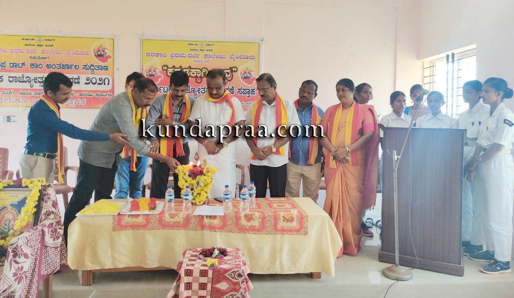 ಕಾಲೇಜು ಅಭಿವೃದ್ಧಿ ಸಮಿತಿ ಕಾರ್ಯಾಧ್ಯಕ್ಷ ದೀಪಕ್ ಕುಮಾರ್ ಶೆಟ್ಟಿ ಕಾರ್ಯಕ್ರಮ ಉದ್ಘಾಟಿಸಿ ಮಾತನಾಡಿ, ರಾಜ್ಯೋತ್ಸವದ ಹೊತ್ತಿನಲ್ಲಿ ನೈಜ ಸಾಧಕರನ್ನು ಗುರುತಿಸಿ ಗೌರವಿಸುವ ಕೆಲಸ ರಾಜ್ಯ ಸರಕಾರದಿಂದ ಆಗಿದೆ. ಕನ್ನಡವನ್ನು ನಿತ್ಯನೂತನವಾಗಿಸುವ ನಿಟ್ಟಿನಲ್ಲಿ ಹಮ್ಮಿಕೊಂಡ ಅಭಿಯಾನ ಮನೆ ಮನಗಳನ್ನು ತಟ್ಟಿದೆ ಎಂದರು.