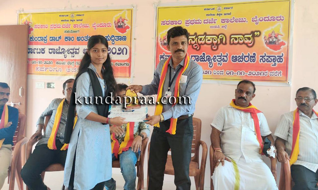 ಕನ್ನಡಾಂಭೆಯ ಭಾವಚಿತ್ರಕ್ಕೆ ಪುಪ್ಪಾರ್ಚನೆ ಮಾಡಿ, ಕನ್ನಡ ಗೀತೆಗಳ ಗಾಯನ ಮಾಡಲಾಯಿತು. ಈ ಸಂದರ್ಭ ಕನ್ನಡಕ್ಕಾಗಿ ನಾವು ಅಭಿಯಾನದ ಅಂಗವಾಗಿ ಆಯೋಜಿಸಿದ್ದ ಪ್ರಂಬಂಧ ಸ್ವರ್ಧೆಯಲ್ಲಿ ತೃತೀಯ ಬಿಕಾಂ ಅನುಶ್ರೀ ಪ್ರಥಮ, ದ್ವಿತೀಯ ಬಿಕಾಂ ವಿದ್ಯಾರ್ಥಿಗಳಾದ ವಿನೋದಾ ದ್ವಿತೀಯ ಹಾಗೂ ಸುನಂದಾ ತೃತೀಯ ಸ್ಥಾನ ಪಡೆದುಕೊಂಡರು. ಕನ್ನಡ ನಾಡಪ್ರೇಮ ಗೀತೆಯಲ್ಲಿ ದ್ವಿತೀಯ ಬಿಕಾಂ ವಿದ್ಯಾರ್ಥಿಗಳಾದ ವಿನೋದಾ ಪ್ರಥಮ, ಕಾಂಚನಾ ದ್ವಿತೀಯ ಹಾಗೂ ಸುನಂದಾ ತೃತೀಯ ಸ್ಥಾನ ಪಡೆದುಕೊಂಡರು. ಕನ್ನಡದಲ್ಲಿ ಮಾತನಾಡುವ ಸ್ವರ್ಧೆಯಲ್ಲಿ ತೃತೀಯ ಬಿಎ ಅನುಶ್ರೀ ಪ್ರಥಮ ಹಾಗೂ ದ್ವಿತೀಯ ಬಿಬಿಎ ಚಿನ್ಮಯ ದ್ವಿತೀಯ ಸ್ಥಾನ ಪಡೆದುಕೊಂಡರು.