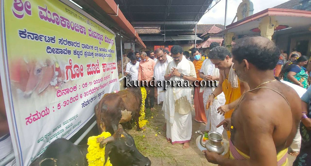 ಕೊಲ್ಲೂರು: ಕೇದಾರನಾಥ ಧಾಮದ ಪುನರ್ನಿರ್ಮಿತ ಆದಿಗುರು ಶ್ರೀ ಶಂಕರಾಚಾರ್ಯರ ಪುಣ್ಯ ಸಮಾಧಿಯ ಲೋಕಾರ್ಪಣೆಯ ಕಾರ್ಯಕ್ರಮ ದ ಅಂಗವಾಗಿ, ಕೊಲ್ಲೂರು ಶ್ರೀ ಮೂಕಾಂಬಿಕಾ ದೇವಸ್ಥಾನದಲ್ಲಿ ಗೋಪೂಜೆ ನಡೆಯಿತು.