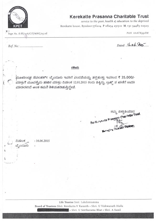 ಕೆರೆಕಟ್ಟೆ ಪ್ರಸನ್ನ ಚಾರಿಟೇಬಲ್ ಟ್ರಸ್ಟ್ (ರಿ) ಎಂಬ ಸಂಸ್ಥೆಯನ್ನು ಹುಟ್ಟುಹಾಕಿ ಆ ಸಂಸ್ಥೆಯ ಮುಖಾಂತರ ಸರ್ಕಾರಿ ಅಧಿಕಾರಿಗಳು, ಉದ್ಯಮಿಗಳಿಂದ ಚಾರಿಟೇಬಲ್ ಟ್ರಸ್ಟ್ ಹೆಸರಿನಲ್ಲಿ ಹಣ ವಸೂಲಿ ಮಾಡಿ ಭ್ರಷ್ಟಾಚಾರ ಮಾಡುತ್ತಿದ್ದಾನೆ. ಕೆರೆಕಟ್ಟೆ ಪ್ರಸನ್ನ ಚಾರಿಟೇಬಲ್ ಟ್ರಸ್ಟ್ ಯಾವುದೇ ಸಮಾಜ ಸೇವೆ ಮಾಡುವ ಸೇವಾ ಮನೋಭಾವ ಹೊಂದಿರದೆ ಕೇವಲ ಭ್ರಷ್ಟಾಚಾರದ ಹಣವನ್ನು ಸ್ವೀಕರಿಸುವ ಟ್ರಸ್ಟ್ ಆಗಿರುತ್ತದೆ. ಸದರಿ ಟ್ರಸ್ಟ್ ಪ್ರಾರಂಭವಾದಂದಿನಿಂದ ಇಲ್ಲಿಯವರೆಗೂ ಯಾವುದೇ ಸಮಾಜಮುಖಿ ಕಾರ್ಯಗಳನ್ನು ಮಾಡಿರುವುದಿಲ್ಲ. ಆದ್ದರಿಂದ ಟ್ರಸ್ಟಿನ ಲೆಕ್ಕಪತ್ರಗಳನ್ನು ತನಿಖೆ ಮಾಡಬೇಕು ಹಾಗೂ ಟ್ರಸ್ಟಿಗೆ ಬಂದಿರುವ ಮೂಲವನ್ನು ತನಿಖೆ ಮಾಡುವಂತೆ ಅವರು ದೂರಿನಲ್ಲಿ ಕೋರಿದ್ದಾರೆ.
