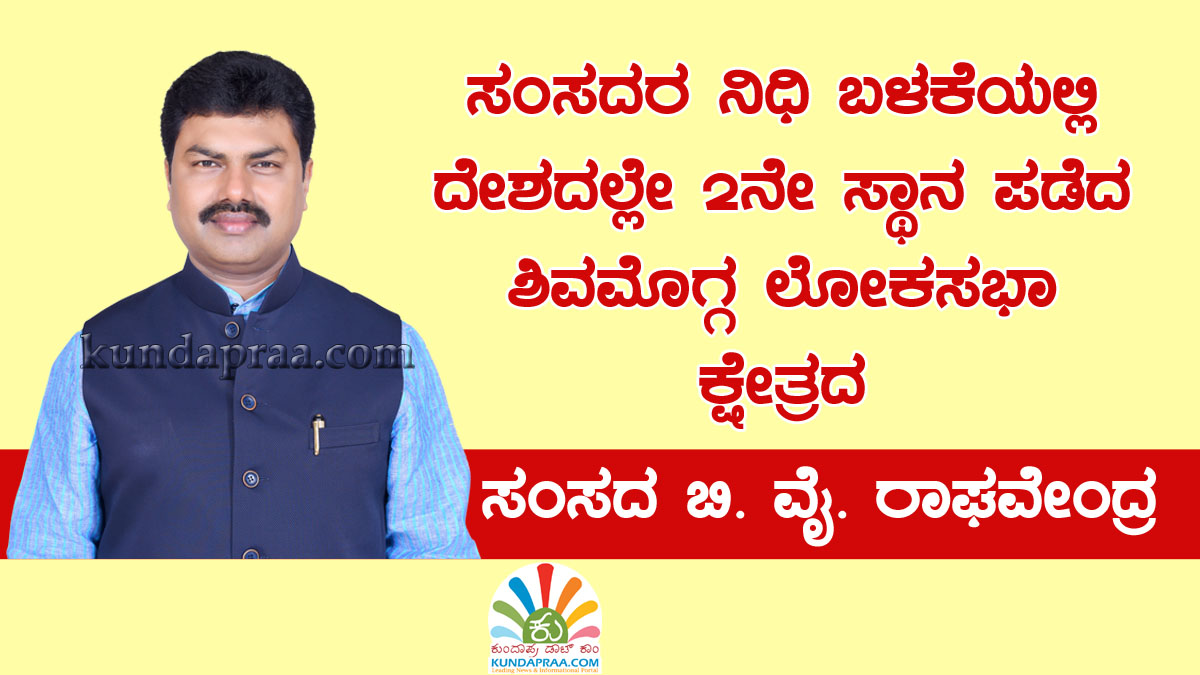 ಕುಂದಾಪುರ: ಸಂಸದರ ನಿಧಿಯಡಿ ಸಾರ್ವಜನಿಕರಿಗೆ ಉಪಯುಕ್ತವಾಗುವಂತಹ ಹಲವು ಕಾರ್ಯಕ್ರಮಗಳನ್ನು ಅನುಷ್ಠಾನಗೊಳಿಸುತ್ತಿದ್ದು ಸಂಸದರ ನಿಧಿ ಬಳಕೆಯಲ್ಲಿ ಶಿವಮೊಗ್ಗ ಲೋಕಸಭಾ ಸದಸ್ಯ ಬಿ.ವೈ.ರಾಘವೇಂದ್ರ ಅವರು ದೇಶಕ್ಕೆ ಎರಡನೇ ಸ್ಥಾನದಲ್ಲಿದ್ದಾರೆ.