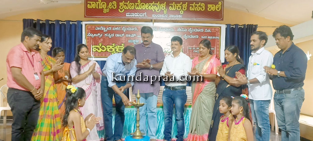 ಬೈಂದೂರು: ವಾಗ್ಜ್ಯೋತಿ ಬಳಗ ಬೈಂದೂರು, ಲಾವಣ್ಯ ರಿ. ಬೈಂದೂರು, ಜೇಸಿಐ ಬೈಂದೂರು ಸಿಟಿ, ಬಿಜೆಪಿ ಮಹಿಳಾ ಮೋರ್ಚಾ ಬೈಂದೂರು, ಸ್ಪೋರ್ಟ್ಸ್ ಕನ್ನಡ ಡಾಟ್ ಕಾಮ್ ಆಶ್ರಯದಲ್ಲಿ ಮಕ್ಕಳ ದಿನಾಚರಣೆಯ ಅಂಗವಾಗಿ ಅಂಪಾರು- ಮೂಡುಬಗೆ ವಾಗ್ಜ್ಯೋತಿ ಶ್ರವಣದೋಷವುಳ್ಳ ಮಕ್ಕಳ ಶಾಲೆಯಲ್ಲಿ ಮಕ್ಕಳ ಹಬ್ಬ 2021 ಕಾರ್ಯಕ್ರಮ ಶಾಲೆಯ ಸಭಾಂಗಣದಲ್ಲಿ ನಡೆಯಿತು.