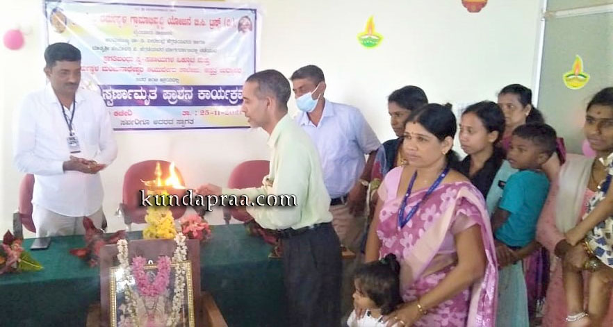 ಕುಂದಾಪುರ: ಶ್ರೀ ಕ್ಷೇತ್ರ ಧರ್ಮಸ್ಥಳದ ಧರ್ಮಾಧಿಕಾರಿ ಡಾ. ಡಿ. ವೀರೇಂದ್ರ ಹೆಗ್ಗಡೆಯವರ ೭೪ನೇ ಹುಟ್ಟು ಹಬ್ಬದ ಅಂಗವಾಗಿ ಶ್ರೀ ಕ್ಷೇತ್ರ ಧರ್ಮಸ್ಥಳ ಗ್ರಾಮಾಭಿವೃದ್ಧಿ ಯೋಜನೆ ಬಿ.ಸಿ ಟ್ರಸ್ಟ್ ಬೈಂದೂರು ತಾಲ್ಲೂಕು ಇದರ ವತಿಯಿಂದ ಉದ್ಯಾವರದ ಶ್ರೀ ಧರ್ಮಸ್ಥಳ ಮಂಜುನಾಥೇಶ್ವರ ಆಯುರ್ವೇದ ಕಾಲೇಜು ಆಸ್ಪತ್ರೆ ಸಹಯೋಗದೊಂದಿಗೆ ಸ್ವರ್ಣಾಮೃತ ಪ್ರಾಶನ ಕಾರ್ಯಕ್ರಮ ತ್ರಾಸಿ ಯೋಜನಾ ಕಚೇರಿಯಲ್ಲಿ ನಡೆಯಿತು.