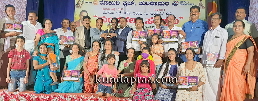 ಬೈಂದೂರು: ರೋಟರಿ ವಲಯ 1ರ ಸಾಂಸ್ಕೃತಿಕ ಕಾರ್ಯಕ್ರಮ ‘ಕುಂದ ಕಲಾ ವೈಭವ’ ಅಂಗವಾಗಿ ಕುಂದಾಪುರ ಲಕ್ಷ್ಮೀನರಸಿಂಹ ಕಲಾಮಂದಿರದಲ್ಲಿ ನಡೆದ ಸ್ಪರ್ಧೆಯಲ್ಲಿ ಬೈಂದೂರು ರೋಟರಿ ಒಟ್ಟು 7 ಪ್ರಶಸ್ತಿ (3 ಪ್ರಥಮ ಹಾಗೂ 4 ದ್ವಿತೀಯ) ಗಳಿಸುವ ಮೂಲಕ ಸಮಗ್ರ ವಲಯ ಚಾಂಪಿಯನ್ಶಿಫ್ಗೆ ಅರ್ಹ ತಂಡವಾಗಿ ಮೂಡಿಬಂದಿದೆ.