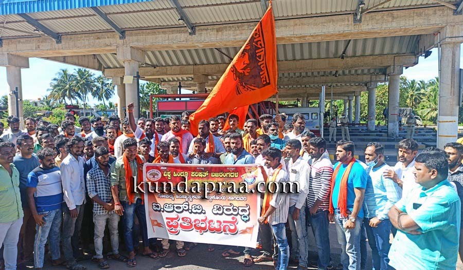 ರಾಷ್ಟ್ರೀಯ ಹೆದ್ದಾರಿಯಲ್ಲಿ ಟೋಯಿಂಗ್ ವಾಹನದ ಹಿಂಭಾಗ ಜಾನುವಾರು ಕಳೇಬರ ಕಟ್ಟಿ ಎಳೆದೊಯ್ದ ಹೆದ್ದಾರಿ ಗುತ್ತಿಗೆದಾರ ಕಂಪೆನಿಯ ವಿರುದ್ದ ಹಿಂದೂ ಹಿತರಕ್ಷಣ ವೇದಿಕೆ ಬೈಂದೂರು ನೇತೃತ್ವದಲ್ಲಿ ವಿಶ್ವ ಹಿಂದೂ ಪರಿಷತ್ ಬಜರಂಗದಳ ಬೈಂದೂರು ಪ್ರಖಂಡ, ಹಿಂದೂ ಜಾಗರಣ ವೇದಿಕೆ, ಸ್ವದೇಶಿ ಬಳಗ ಹಾಗೂ ಇನ್ನಿತರ ಹಿಂದೂಪರ ಸಂಘಟನೆಗಳಿಂದ ಸೋಮವಾರ ಶಿರೂರು ಟೋಲ್ ಪ್ಲಾಜಾ ಬಳಿ ಬೃಹತ್ ಪ್ರತಿಭಟನೆ ನಡೆಯಿತು.