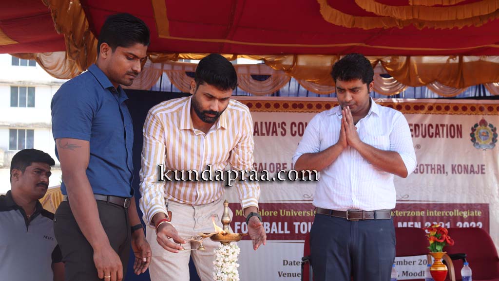 ವಿದ್ಯಾಗಿರಿಯ ಪ್ಯಾಲೆಸ್ ಗ್ರೌಂಡ್ನಲ್ಲಿ ಸೋಮವಾರ ಆರಂಭಗೊಂಡ ಮೂರು ದಿನದ ಮಂಗಳೂರು ವಿವಿ ಅಂತರ್ಕಾಲೇಜು ಹಾಗೂ ಉಡುಪಿ ವಲಯ ಮಟ್ಟದ ಫುಟ್ಬಾಲ್ ಚಾಂಪಿಯನ್ಶಿಪ್ನಲ್ಲಿ ಮಾತನಾಡಿದ ಅವರು, ಆಳ್ವಾಸ್ ಸಂಸ್ಥೆಯು ಶಿಕ್ಷಣದ ಜತೆ ಕ್ರೀಡೆಗೂ ಮಹತ್ವ ನೀಡುತ್ತಿದೆ. ಕ್ರೀಡಾಪಟುಗಳು ಯಾವುದೇ ಕ್ರೀಡೆಯಲ್ಲಿ ವೃತ್ತಿಪರತೆಯಿಂದ ತೊಡಗಿಸಿಕೊಂಡು, ತಮ್ಮ ಕ್ಷೇತ್ರಕ್ಕೆ ಬದ್ಧರಾಗಿರಬೇಕೆಂದು ಹೇಳಿದರು.