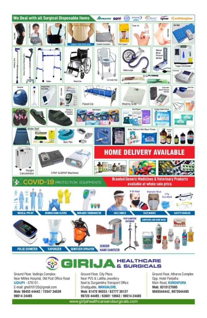 ಗಿರಿಜಾ ಹೆಲ್ತ್ ಕೇರ್ ಈಗಾಗಲೇ ಉಡುಪಿ ಹಾಗೂ ಮಂಗಳೂರಿನಲ್ಲಿ ಉತ್ತಮ ಸೇವೆ ನೀಡುತ್ತಿದ್ದು, ಗ್ರಾಹಕರ ನೆಚ್ಚಿನ ಸಂಸ್ಥೆಯಾಗಿದೆ. ಒಂದೇ ಸೂರಿನಡಿಯಲ್ಲಿ ಎಲ್ಲಾ ಬಗೆಯ ಸರ್ಜಿಕಲ್ ಪ್ರಾಡೆಕ್ಟ್ ಲಭ್ಯವಿರುವುದು ಇಲ್ಲಿನ ವಿಶೇಷವಾಗಿದೆ, ಅಲ್ಲದೇ ಗುಣಮಟ್ಟದ ಪ್ರಾಡೆಕ್ಟ್ ಜೊತೆಗೆ ವೆರೈಟಿ ಪ್ರಾಡೆಕ್ಟ್’ಗಳು ಕೂಡ ಇಲ್ಲಿ ಲಭ್ಯವಿದ್ದು, ಗ್ರಾಹಕರಿಗೆ ಉತ್ತಮ ಆಯ್ಕೆ ದೊರೆಯಲಿದೆ. ಕೊಂಡುಕೊಳ್ಳುವ ಪ್ರಾಡೆಕ್ಟ್ ಡೆಮೋ, ರಿಪ್ಲೆಸ್’ಮೆಂಟ್ ವಾರೆಂಟಿಗಳು ಇರುವುದರಿಂದ ಸೂಕ್ತ ಪ್ರಾಡೆಕ್ಟ್ ಆಯ್ಕೆಗೆ ಸಹಕಾರಿಯಾಗಲಿದೆ ಎಂದು ಸಂಸ್ಥೆಯ ಪಾಲುದಾರರಾದ ರವೀಂದ್ರ ಕೆ. ಶೆಟ್ಟಿ ಹೇಳುತ್ತಾರೆ.