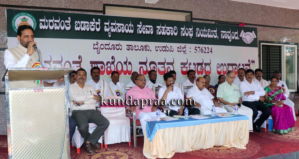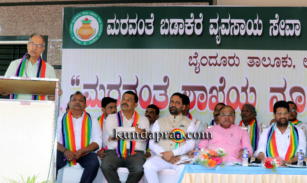 ಅವಿಭಜಿತ ದ.ಕ ಜಿಲ್ಲೆಯಲ್ಲಿ ಕೃಷಿಪತ್ತಿನ ಸಹಕಾರ ಸಂಘಗಳು ಲಾಭದಲ್ಲಿ ಮುನ್ನೆಡೆಯುತ್ತಿದೆ. 26 ವರ್ಷಗಳಿಂದ ದೇಶದಲ್ಲಿಯೇ ಕೃಷಿ ಸಾಲ ಸಮರ್ಪಕವಾಗಿ ಮರುಪಾವತಿಯಲ್ಲಿ ನಮ್ಮ ಜಿಲ್ಲೆ ಪ್ರಥಮ ಸ್ಥಾನದಲ್ಲಿದೆ. ಇಂಥಹ ಸಹಕಾರ ಸಂಘಗಳು ಸದೃಢವಾಗಿ ಬೆಳೆದರೆ ಮಾತ್ರ ಇಡೀ ಸಹಕಾರ ವ್ಯವಸ್ಥೆ ಉಳಿಯಲು ಸಾಧ್ಯ ಎಂದ ಅವರು, ಸಹಕಾರ ಮನೋಭಾವದಿಂದ ಮರವಂತೆ ಬಡಾಕೆರೆ ವ್ಯವಸಾಯ ಸೇವಾ ಸಹಕಾರಿ ಸಂಘ ಸದೃಢವಾಗಿ ಬೆಳೆದಿದೆ. ಸುಸಜ್ಜಿತವಾದ ಸ್ವಂತ ಕಟ್ಟಡಗಳನ್ನು ಹೊಂದಿದೆ. ಉತ್ತಮ ಆಡಳಿತ, ಸಿಬ್ಬಂದಿಗಳ ಸೇವೆ, ಸದಸ್ಯರ ಸಹಕಾರದಿಂದ ಇದು ಸಾಧ್ಯವಾಗಿದೆ. ಸತತ 27 ವರ್ಷಗಳಿಂದ ಈ ಸಂಘದ ಅಧ್ಯಕ್ಷರಾಗಿರುವ ಎಸ್. ರಾಜು ಪೂಜಾರಿಯವರ ಶ್ರಮವೂ ಮಹತ್ವದ್ದಾಗಿದೆ ಎಂದರು.