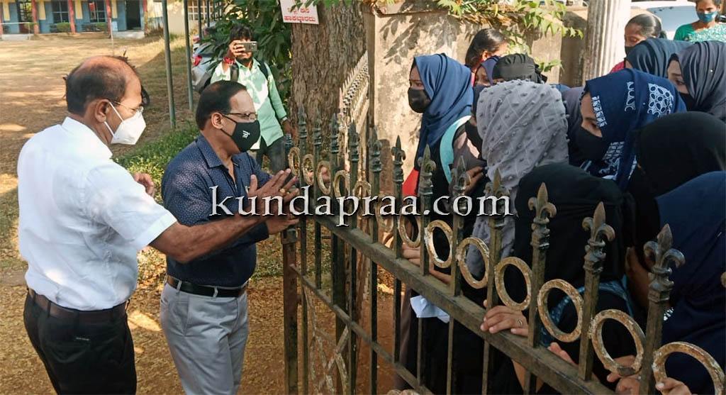 ಕಾಲೇಜಿನ ಆವರಣದ ಹೊರಗೆ ನಿಂತ ಮುಸ್ಲಿಂ ಸಮುದಾಯದ ವಿದ್ಯಾರ್ಥಿನಿಯರು, ನಾವು ಭಾರತದ ಪ್ರಜೆಗಳು, ನಮಗೂ ಕಲಿಕೆಗೆ ಅವಕಾಶ ಕೊಡಿ. ಕಾಲೇಜು ಶಿಕ್ಷಣ ಅಂತಿಮ ಹಂತದಲ್ಲಿರುವಾಗ ಇಂತಹ ಕಾನೂನು ತರುವುದು ಸರಿಯಲ್ಲ. ಮೊದಲೇ ಹೇಳಿದ್ದರೆ ನಾವು ಈ ಕಾಲೇಜಿಗೆ ಪ್ರವೇಶ ಪಡೆಯುತ್ತಿರಲಿಲ್ಲ. ಹಿಜಾಬ್ ಕಾರಣವಿಟ್ಟುಕೊಂಡು ನಮ್ಮ ಭವಿಷ್ಯ ಹಾಳುಮಾಡಬೇಡಿ ಎಂದು ಮನವಿ ಮಾಡುತ್ತಾ ಕಣ್ಣೀರು ಹಾಕಿದರು.