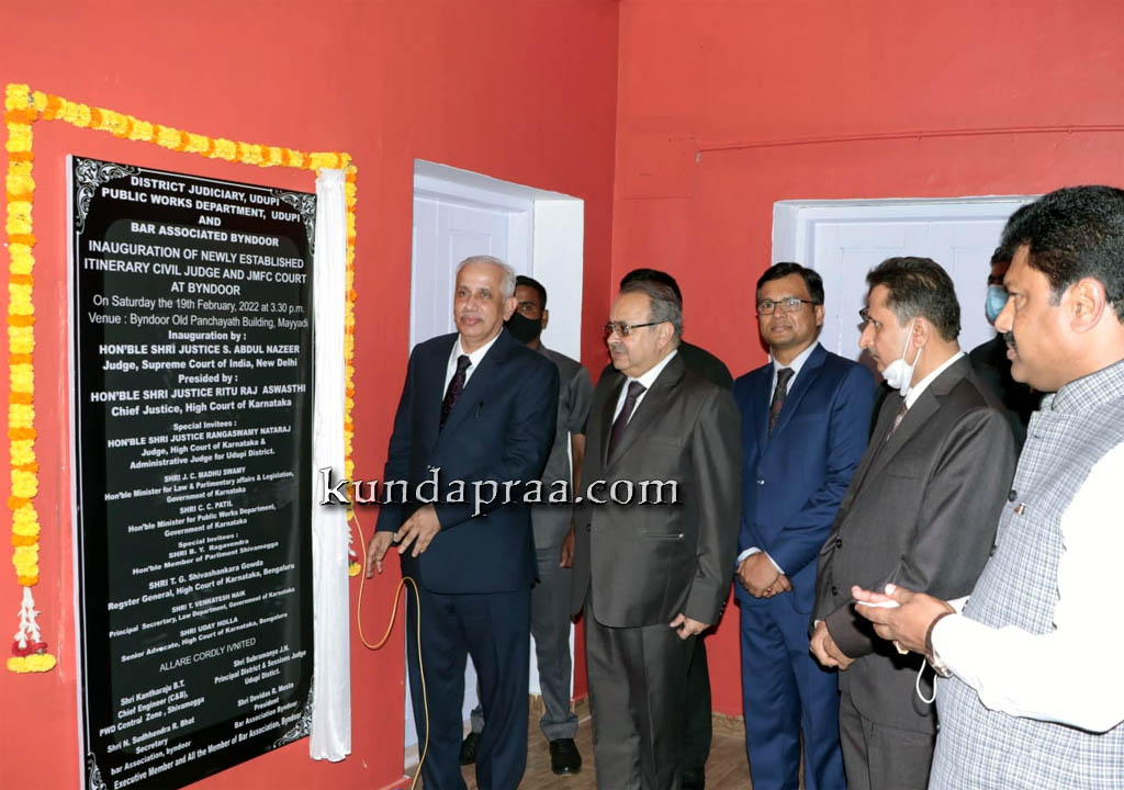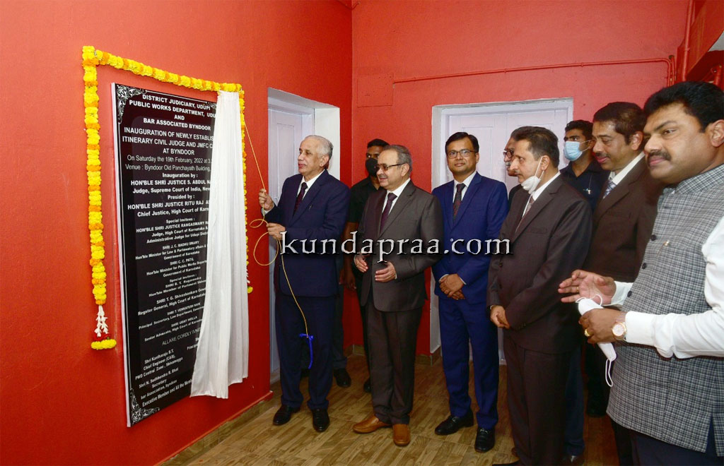 ಸರ್ವೋಚ್ಛ ನ್ಯಾಯಾಲಯದ ನ್ಯಾಯಮೂರ್ತಿ ಎಸ್. ಅಬ್ದುಲ್ ನಝೀರ್ ಅವರು ಬೈಂದೂರು ನ್ಯಾಯಾಲಯದ ಕಛೇರಿ ಉದ್ಘಾಟಿಸಿ ಮಾತನಾಡಿ, ಬೈಂದೂರು ಭಾಗದಲ್ಲಿ 2800 ವಿವಿಧ ಪ್ರಕರಣಗಳಿದ್ದು ಇದ್ದು, ಒಂದು ಕೋರ್ಟ್ನಲ್ಲಿ 1000 ಸಾವಿರ ಪ್ರಕರಣಗಳಿಗೆ ಮಾತ್ರ ಅವಕಾಶ ನೀಡಬಹುದು ಆದರೆ ಈ ಕೇಸ್ಗಳಿಗೆ ಎರಡು ಶಾಶ್ವತ ಕೋರ್ಟ್ನ ಅವಶ್ಯಕತೆ ಇದೆ. ಈ ಭಾಗದಲ್ಲಿ ಕೋರ್ಟ್ ಆಗಿದ್ದು, ಹಲವಾರು ಜನರಿಗೆ ಸಹಾಯ ಸಹಕಾರವಾಗಿದೆ ಎಂದರು.