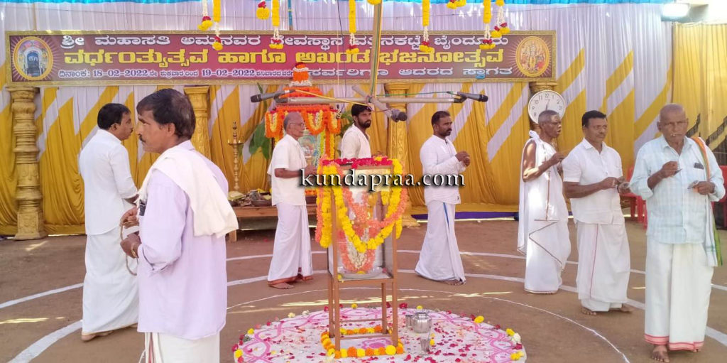 ಬೈಂದೂರು: ವತ್ತಿನಕಟ್ಟೆ ಶ್ರೀ ಮಹಾಸತಿ ಅಮ್ಮನವರ ದೇವಸ್ಥಾನ ವಾರ್ಷಿಕ ವರ್ಧಂತ್ಯೋತ್ಸವದ ಅಂಗವಾಗಿ ಹಮ್ಮಿಕೊಂಡ ಅಖಂಡ ಭಜನೋತ್ಸವ ಕಾರ್ಯಕ್ರಮ ಶನಿವಾರ ಸಂಪನ್ನಗೊಂಡಿತು.