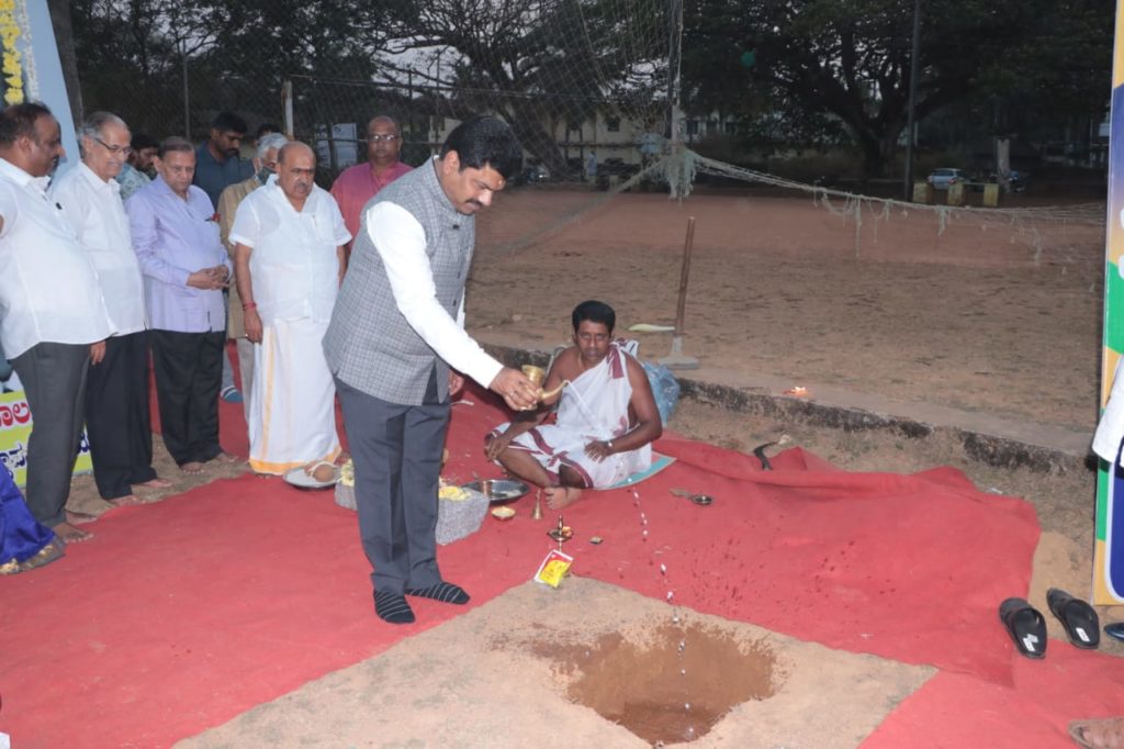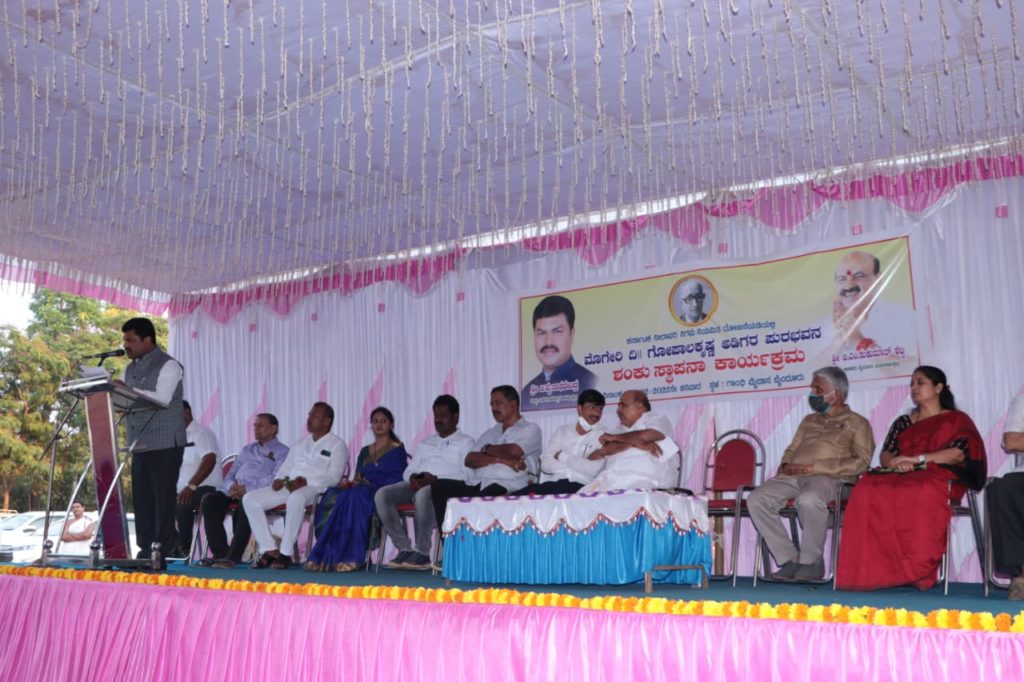 ಬೈಂದೂರು: ಸಾಹಿತಿ ಮೊಗೇರಿ ಗೋಪಾಲಕೃಷ್ಣ ಅಡಿಗ ಅವರ ಸ್ಮರಣಾರ್ಥವಾಗಿ ಬೈಂದೂರು ಪಟ್ಟಣ ಪಂಚಾಯತ್ ವ್ಯಾಪ್ತಿಯ ಗಾಂಧಿ ಮೈದಾನದ ಸಮೀಪ ₹4.95 ಕೋಟಿ ವೆಚ್ಚದಲ್ಲಿ ಪುರಭವನ ನಿರ್ಮಾಣಕ್ಕೆ ಸಂಸದ ಬಿ. ವೈ. ರಾಘವೇಂದ್ರ ಅವರು ಶಂಕುಸ್ಥಾಪನೆ ನೆರವೇರಿಸಲಾಯಿತು.