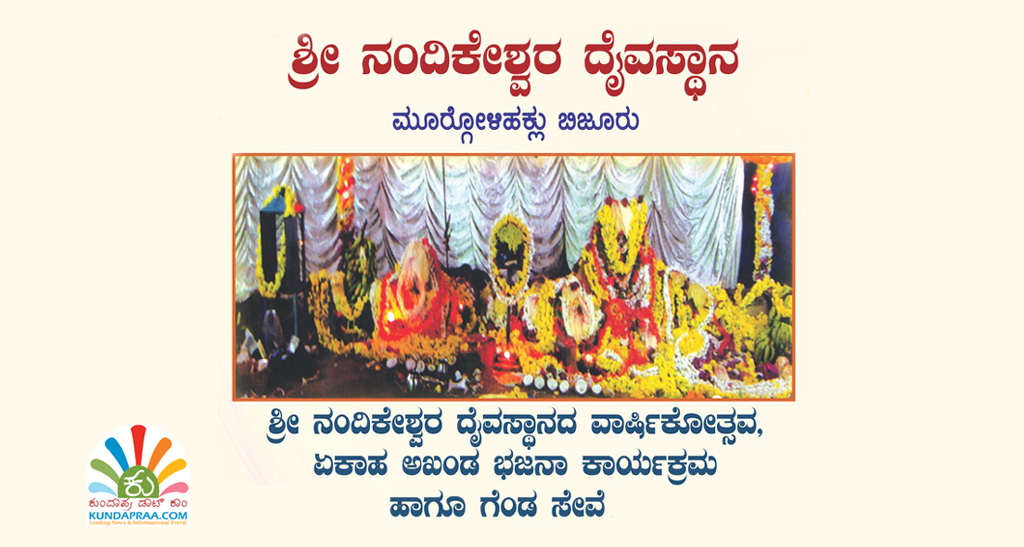 ► ಮೂರ್ಗೋಳಿಹಕ್ಲು ಶ್ರೀ ನಂದಿಕೇಶ್ವರ ದೈವಸ್ಥಾನ ವಾರ್ಷಿಕ ಭಜನೆ ಆಮಂತ್ರಣ ಪತ್ರಿಕೆ ಬಿಡುಗಡೆ – https://kundapraa.com/?p=58615 .