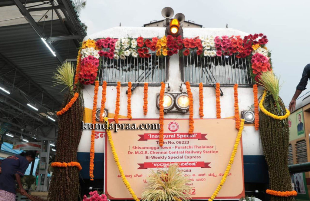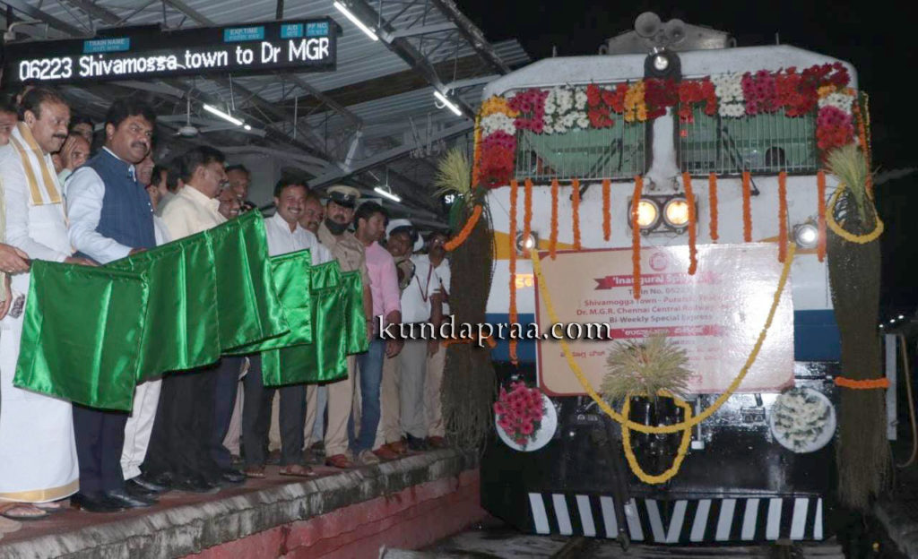 ಶಿವಮೊಗ್ಗ-ರೇಣಿಗುಂಟ (ತಿರುಪತಿ) – ಚೆನ್ನೈ ನೂತನ ರೈಲಿಗೆ ಸಂಸದರಿಂದ ಹಸಿರು ನಿಶಾನೆ
