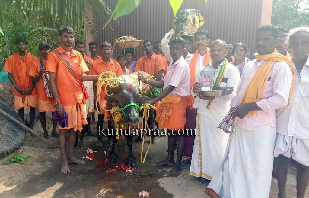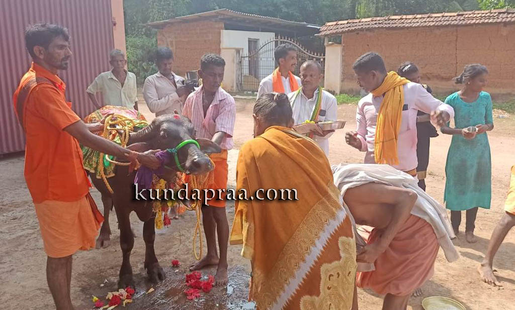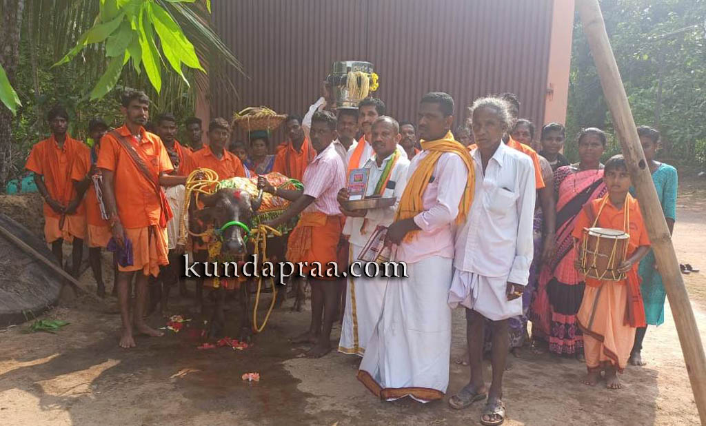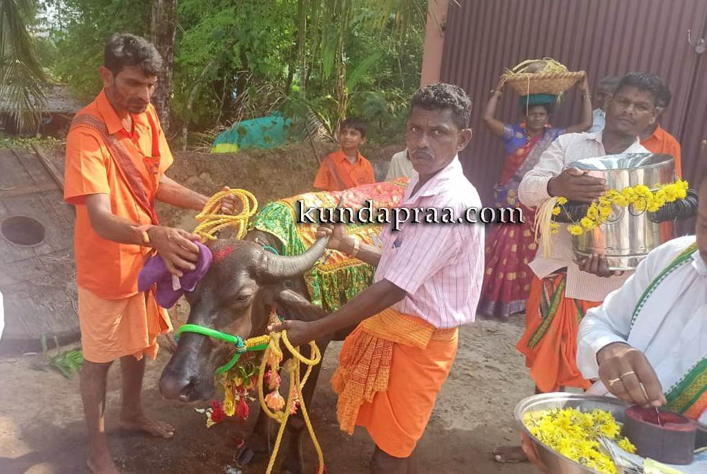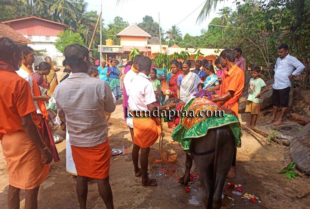 ಕುಂದಾಪುರ: ಕರಾವಳಿ ಜಿಲ್ಲೆಯ ಮಾರಿಕಾಂಬಾ ದೇಗುಲಗಳಲ್ಲಿನ ಮಾರಿ ಜಾತ್ರೆಯಲ್ಲಿ ಕಂಡುಬರದ ಮನೆ ಮನೆಗೆ ಕೋಣ ಮೆರವಣಿಗೆ ಸಂಪ್ರದಾಯವೊಂದು ನೂರಾರು ವರ್ಷಗಳಿಂದ ಕೆಳಾಕಳಿ ಶ್ರೀ ಮಾರಿಕಾಂಬಾ ದೇವಸ್ಥಾನದಲ್ಲಿ ನಡೆಯುತ್ತದೆ.