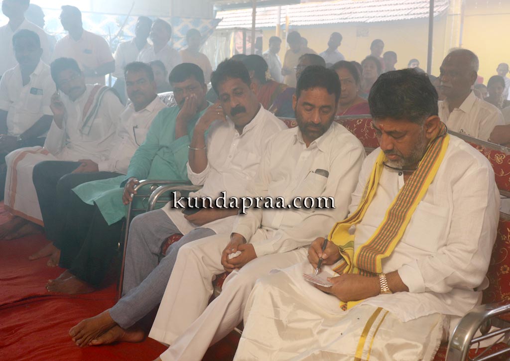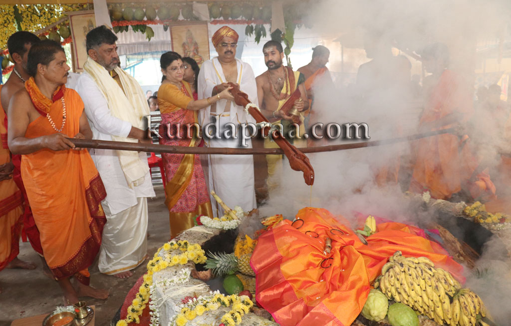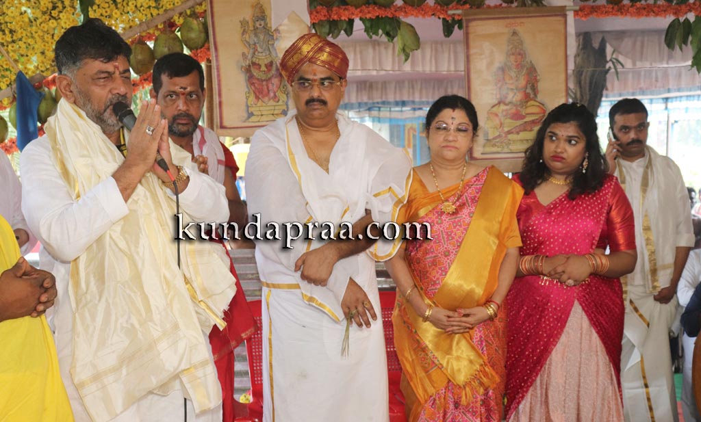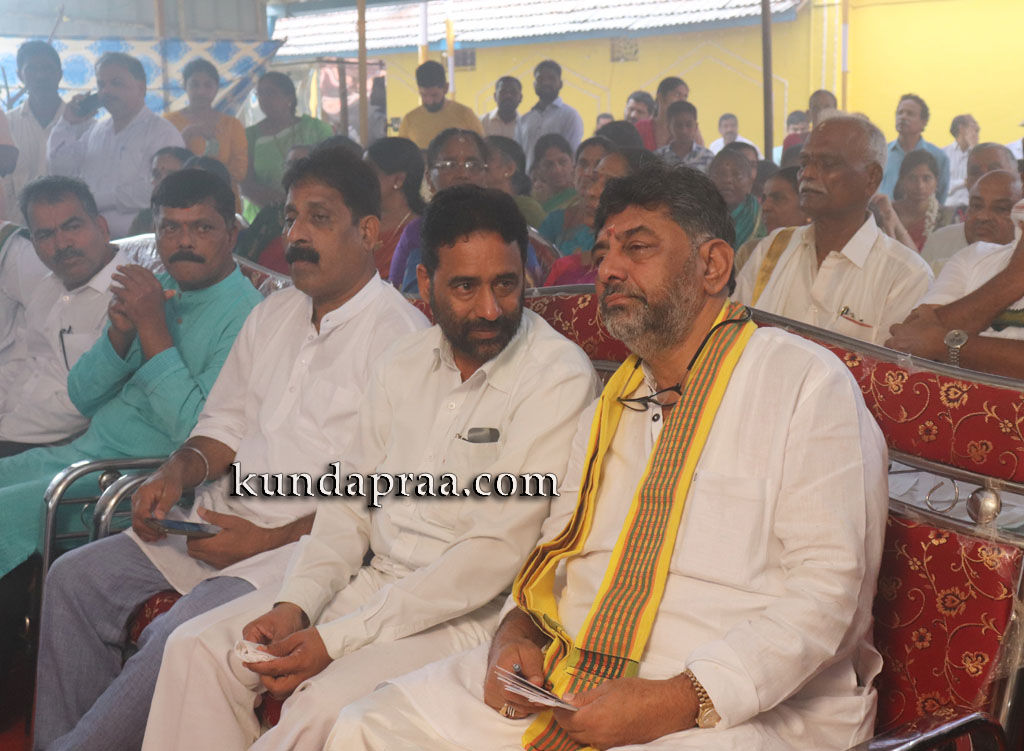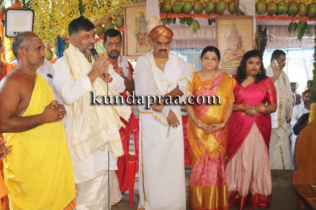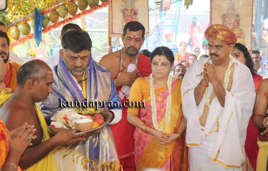 ಕಾರ್ಯಕ್ರಮಕ್ಕೆ ಆಗಮಿಸಿದ ಡಿ.ಕೆ ಶಿವಕುಮಾರ್ ಅವರನ್ನು ಯು.ಬಿ. ಶೆಟ್ಟಿ ದಂಪತಿಗಳು ಹಾಗೂ ದೇವಳದ ಅರ್ಚಕರು ಸನ್ಮಾನಿಸಿದರು. ಈ ಸಂದರ್ಭ ಉಡುಪಿ ಜಿಲ್ಲಾ ಕಾಂಗ್ರೆಸ್ ಅಧ್ಯಕ್ಷ ಅಶೋಕ್ ಕುಮಾರ್ ಕೊಡವೂರು, ಮಾಜಿ ಶಾಸಕ ಯು.ಆರ್. ಸಭಾಪತಿ, ಬೈಂದೂರು ಬ್ಲಾಕ್ ಕಾಂಗ್ರೆಸ್ ಅಧ್ಯಕ್ಷ ಎಸ್. ಮದನ್ ಕುಮಾರ್ ಉಪ್ಪುಂದ, ಜಿಲ್ಲಾ ಕಾಂಗ್ರೆಸ್ ಉಪಾಧ್ಯಕ್ಷ ಎಸ್. ರಾಜು ಪೂಜಾರಿ, ಕೆಪಿಸಿಸಿ ಸದಸ್ಯ ಎಸ್. ಪ್ರಕಾಶ್ಚಂದ್ರ ಶೆಟ್ಟಿ, ಉದ್ಯಮಿ ಸುರೇಂದ್ರ ಶೆಟ್ಟಿ ಮೊದಲಾದವರು ಈ ಸಂದರ್ಭ ಉಪಸ್ಥಿತರಿದ್ದರು.