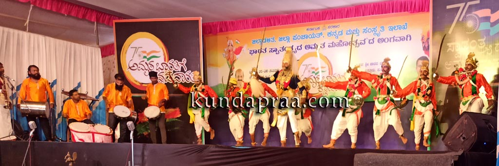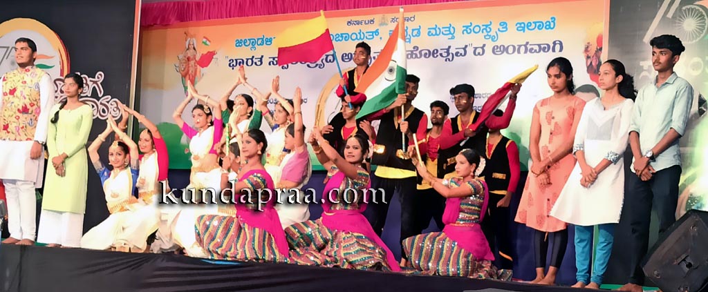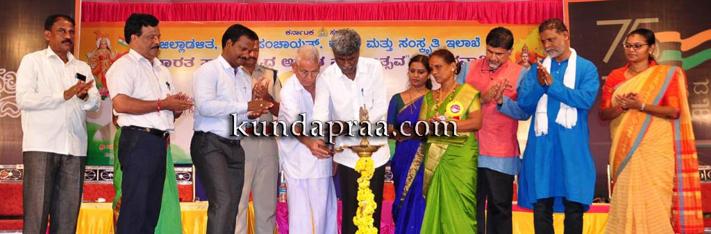 ಜಿಲ್ಲಾಡಳಿತ, ಜಿಲ್ಲಾ ಪಂಚಾಯಿತಿ ಕನ್ನಡ ಮತ್ತು ಸಂಸ್ಕೃತಿ ಇಲಾಖೆ ಹಾಗೂ ತಾಲೂಕು ಆಡಳಿತ ಆಶ್ರಯದಲ್ಲಿ ಭಾರತ ಸ್ವಾತಂತ್ರ್ಯದ ಅಮೃತಮಹೋತ್ಸವ ಅಂಗವಾಗಿ ಬಸ್ರೂರು ಶ್ರೀ ಶಾರದಾ ಕಾಲೇಜ್ ಆವರಣದಲ್ಲಿ ಶನಿವಾರ ನಡೆದ ಅಮೃತ ಭಾರತಿಗೆ ಕನ್ನಡ ಆರತಿ ಉದ್ಘಾಟಿಸಿ ಮಾತನಾಡಿದರು.