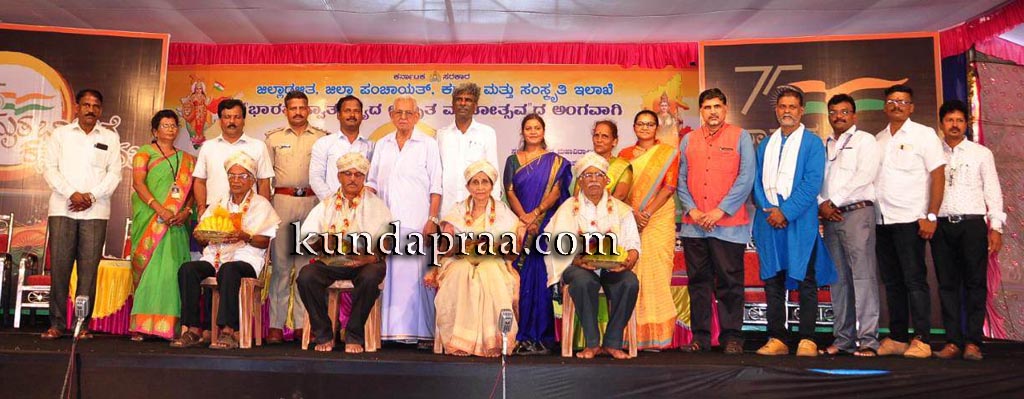 ಸ್ವಾತಂತ್ರ್ಯ ಹೋರಾಟಗಾರರಾದ ಬಸ್ರೂರು ಗೋಪಾಲಕೃಷ್ಣ ಶೆಣೈ ಪುತ್ರಿ ಮಹಾಲಕ್ಮೀ ಕಾಮತ್, ಬಳ್ಕೂರು ಗಾಂಧಿ ರಾಮಣ್ಣ ಶೆಟ್ಟಿ ಅಳಿಯ ನಿವೃತ್ತ ಪ್ರಾಂಶುಪಾಲ ಪ್ರೊ. ಗಣಪಯ್ಯ ಶೆಟ್ಟಿ, ಕೊಳ್ಕೆಬೈಲು ಮಹಾಬಲ ಶೆಟ್ಟಿ ಪುತ್ರ ಪ್ರಕಾಶ್ಚಂದ್ರ ಶೆಟ್ಟಿ, ಕಳಂಜೆ ಕೃಷ್ಣ ಭಟ್ ಪುತ್ರ ಶ್ರೀಧರ ಭಟ್ ಅವರ ಸನ್ಮಾನಿಸಲಾಯಿತು.