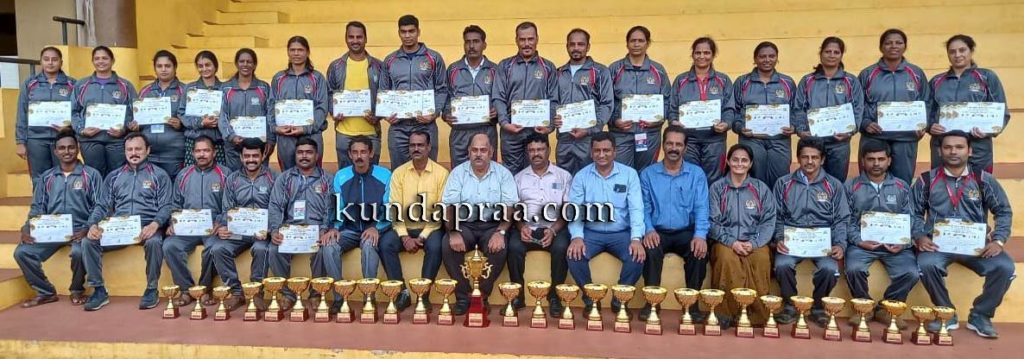 ಉಡುಪಿ,ಜೂ.08: ಬೆಂಗಳೂರು ನಗರದ ಕಂಠೀರವ ಕ್ರೀಡಾಂಗಣದಲ್ಲಿ ಮೇ 30 ರಿಂದ ಜೂನ್ 1 ರ ವರೆಗೆ ನಡೆದ ಕರ್ನಾಟಕ ರಾಜ್ಯ ಸರ್ಕಾರಿ ನೌಕರರ ರಾಜ್ಯಮಟ್ಟದ ಕ್ರೀಡಾಕೂಟ ಹಾಗೂ ಸಾಂಸ್ಕೃತಿಕ ಸ್ಫರ್ಧೆಯಲ್ಲಿ ಉಡುಪಿ ಜಿಲ್ಲೆಯಿಂದ ಒಟ್ಟು 76 ನೌಕರರು ಭಾಗವಹಿಸಿ, 14 ಚಿನ್ನ, 8 ಬೆಳ್ಳಿ ಹಾಗೂ 8 ಕಂಚಿನೊಂದಿಗೆ ಸಮಗ್ರ ತಂಡ ವಿಭಾಗದಲ್ಲಿ ದ್ವಿತೀಯ ಸ್ಥಾನ ಪಡೆದಿರುತ್ತಾರೆ.