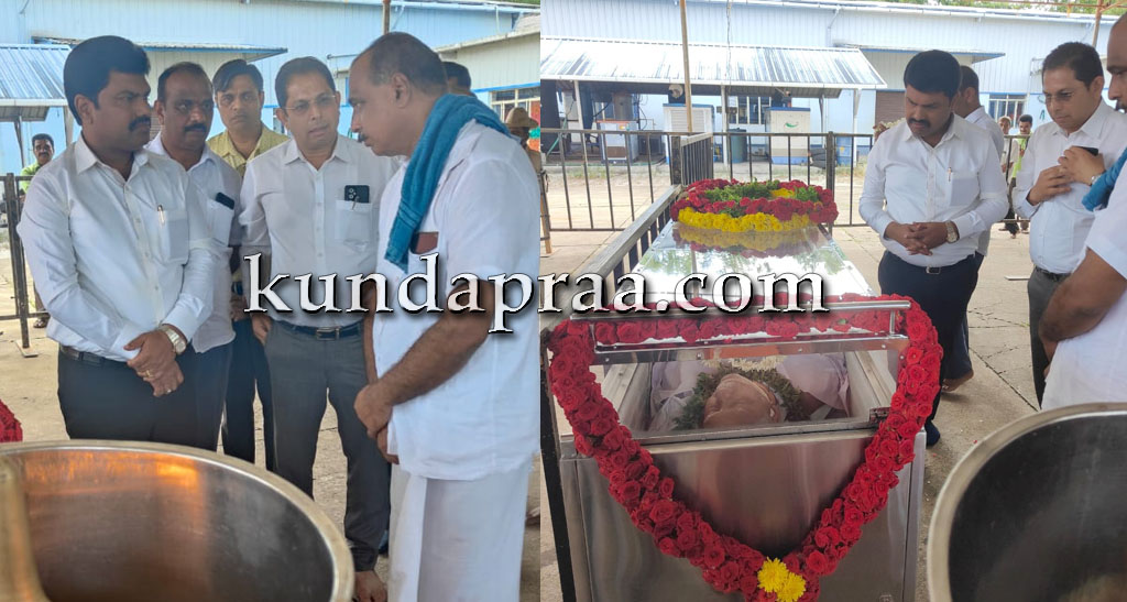 ಕುಂದಾಪುರ,ಜು.13: ಸೋಮವಾರ ದೈವಾಧೀನರಾದ ಮಾಜಿ ಶಾಸಕ ಎ.ಜಿ ಕೊಡ್ಗಿಯವರ ಪಾರ್ಥಿವ ಶರೀರವನ್ನು ಸಾರ್ವಜನಿಕ ದರ್ಶನಕ್ಕಾಗಿ ಅಮಾಸೆಬೈಲುವಿನ ಗೋಕುಲ್ ಇಂಡಸ್ಟ್ರೀಸ್ ವಠಾರದಲ್ಲಿ ಇರಿಸಲಾಗಿದ್ದು, ಮಂಗಳವಾರ ವಿವಿಧ ಕ್ಷೇತ್ರಗಳ ಗಣ್ಯರು ಭೇಟಿ ನೀಡಿ ಅಂತಿಮ ದರ್ಶನ ಪಡೆದರು.
