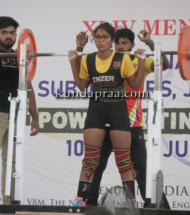 ಬೈಂದೂರು: ಮೈಸೂರಿನ ಎನ್.ಐ.ಇ ಕಾಲೇಜು ಆಡಿಟೋರಿಯಂನಲ್ಲಿ ಇತ್ತಿಚಿಗೆ ಜರುಗಿದ ಕರ್ನಾಟಕ ರಾಜ್ಯ ಜ್ಯೂನಿಯರ್, ಸಬ್ ಜ್ಯೂನಿಯರ್ ಹಾಗೂ ಮಾಸ್ಟರ್ ಪವರ್ ಲಿಫ್ಟಿಂಗ್ ಚಾಂಪಿಯನ್ಶಿಪ್ – 22ರ ಜ್ಯೂನಿಯರ್ ವಿಭಾಗದಲ್ಲಿ ಸೌಮ್ಯ ಬಿ. ತೃತೀಯ ಸ್ಥಾನದೊಂದಿಗೆ ಕಂಚಿನ ಪದಕ ಗೆದ್ದಿದ್ದಾಳೆ.