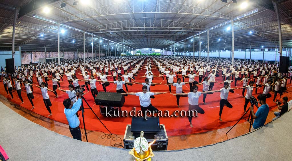 ಮೂಡುಬಿದಿರೆ: ಅಂತರಾಷ್ಟ್ರೀಯ ಯೋಗ ದಿನಾಚರಣೆಯ ಅಂಗವಾಗಿ ಆಳ್ವಾಸ್ ಶಿಕ್ಷಣ ಪ್ರತಿಷ್ಠಾನದ ವಿವಿಧ ವಿದ್ಯಾಸಂಸ್ಥೆಗಳ 2,650 ವಿದ್ಯಾರ್ಥಿಗಳು ದಕ್ಷಿಣಕನ್ನಡದ ಆಯುಷ್ ಇಲಾಖೆಯ ಸಹಯೋಗದೊಂದಿಗೆ ಬೆಳಿಗ್ಗೆ 6:30 ರಿಂದ 7:30 ರವರೆಗೆ ಆಳ್ವಾಸ್ ನುಡಿಸಿರಿ ವೇದಿಕೆಯಲ್ಲಿ ಯೋಗ ಪ್ರಾತ್ಯಕ್ಷಿಕೆಯನ್ನು ನೀಡಿದರು.
