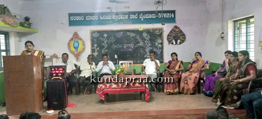 ಬೈಂದೂರು: ಇಲ್ಲಿನ ಸರಕಾರಿ ಮಾದರಿ ಹಿರಿಯ ಪ್ರಾಥಮಿಕ ಶಾಲೆಯಲ್ಲಿ ಸೇವಾ ನಿವೃತ್ತಿಗೊಂಡ ಶಿಕ್ಷಕಿ ಭಾಗಿರಥಿ ಮೊಗೇರ ಅವರಿಗೆ ಬೀಳ್ಕೊಡುಗೆ ಸಮಾರಂಭ ಗುರುವಾರ ಜರುಗಿತು.