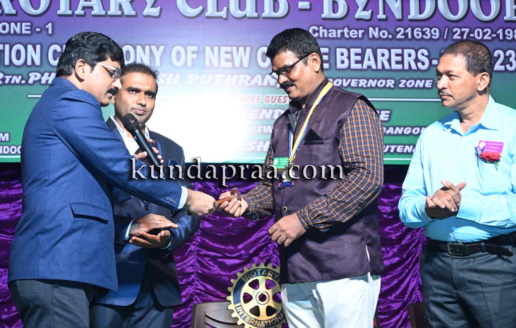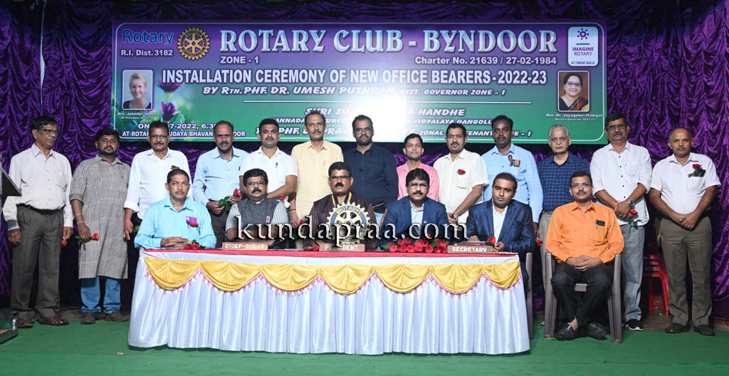 ಬೈಂದೂರು ರೋಟರಿ ಕ್ಲಬ್ ನೂತನ ಅಧ್ಯಕ್ಷ ಹರೇಗೋಡು ಉದಯ ಆಚಾರ್ ಅಧ್ಯಕ್ಷತೆ ವಹಿಸಿದ್ದರು. ಎಸ್ಎಸ್ಎಲ್ಸಿಯಲ್ಲಿ ಹಾಗೂ ಸೌಂಡ್ ಇಂಜಿನಿಯರಿಂಗ್ನಲ್ಲಿ ರ್ಯಾಂಕ್ ವಿಜೇತ ಕ್ರಮವಾಗಿ ಅಕ್ಷತಾ ನಾಯ್ಕ್ ಮತ್ತು ವರ್ಧನ್ ಆಚಾರ್ಯ ಹರೇಗೋಡು ಇವರನ್ನು ಸನ್ಮಾನಿಸಲಾಯಿತು. ರೋಟರಿ ಬುಲೆಟಿನ್ ಹಾಗೂ ಬೈಂದೂರು ರೋಟರಿ ಡೈರೆಕ್ಟರಿಯನ್ನು ಬಿಡುಗಡೆಗೊಳಿಸಲಾಯಿತು. ಕ್ಲಬ್ಬಿಗೆ ಹನ್ನೆರಡು ಹೊಸ ಸದಸ್ಯರು ಸೇರ್ಪಡೆಯಾದರು.